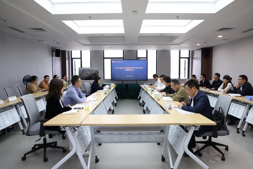 报告会上,教务处负责人介绍了学院2022年度重庆市高等教育教学改革研究立项项目情况以及开题相关事宜。随后,学院获批立项的2022年市教改重大项目(1个)、重点项目(2个)和一般项目(7个)负责人结合立项申请内容和已开展研究情况,就项目内容、方法、组织、分工、进度、经费分配、预期成果等方面进行了汇报。专家组认真听取了汇报,并从研究内容、研究方法、研究过程、预期成果等多角度进行了细致点评,提出了指导性意见和建议。经专家组合议,一致同意10个项目全部开题,可以进入实质性研究阶段。