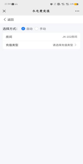 (一)水电缴费是指对宿舍房间的冷水和电充值缴费,系统默认自动给本人所在房间缴费;如果给其他房间充值,请选择手动方式,然后按照提示完成指定房间充值缴费。