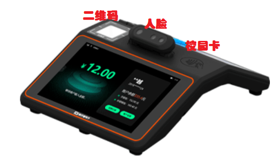 食堂消费设备目前支持人脸、虚拟卡、实体卡三种支付方式,其中虚拟卡支持“二维码”和“扫一扫”两种方式,详见下图。