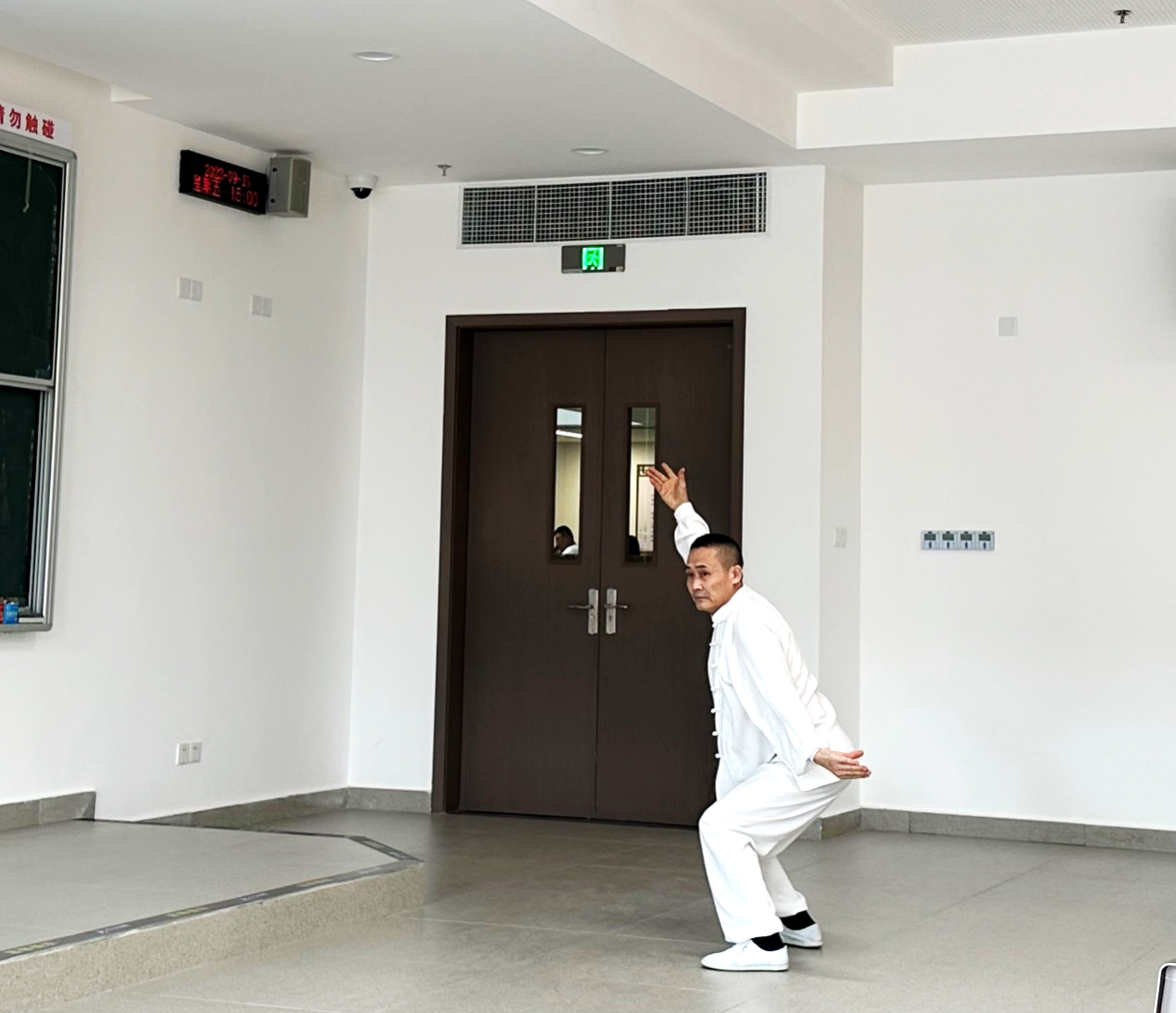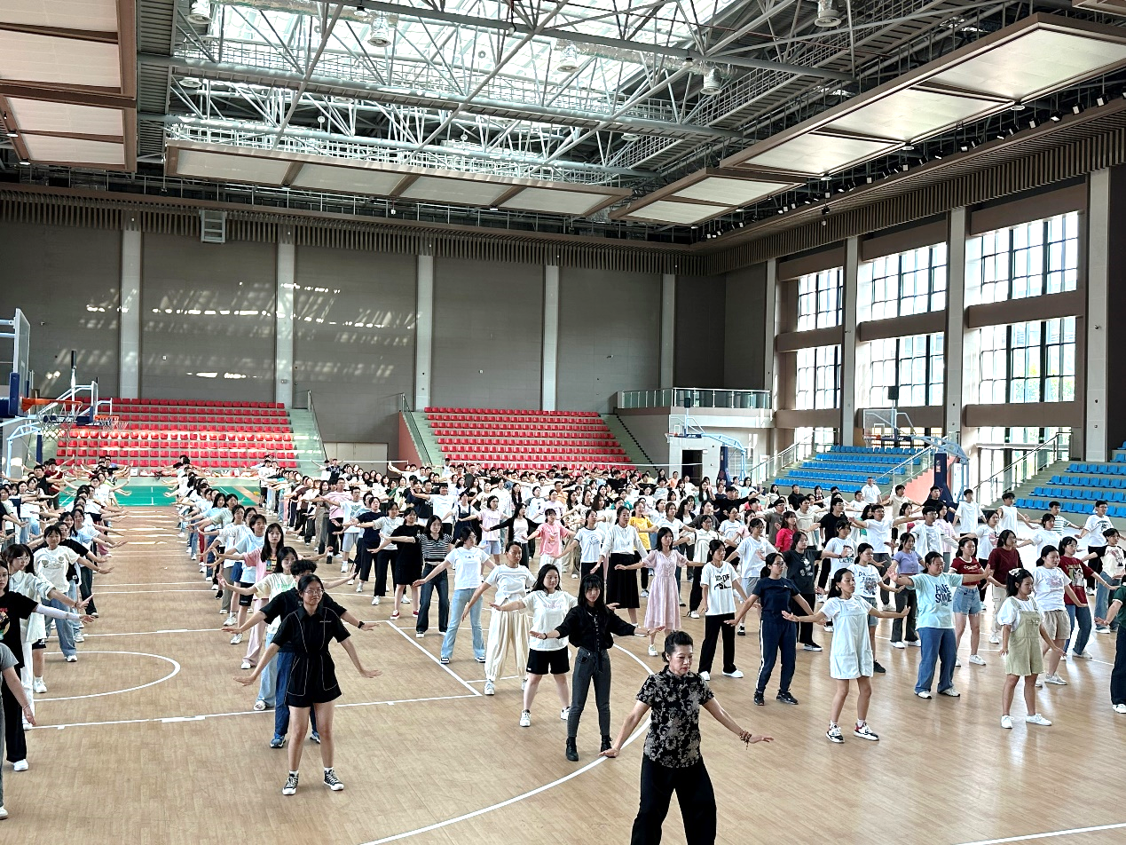 随后,同学们来到体育馆进行武医结合功法沉浸式体验活动。近300名同学列队站好,跟随燕青门的老师们学习《八段锦》,本次活动先教授了前三式“双手托天理三焦”、“左右开弓似射雕”、“调理脾胃须单举”的动作要领。通过四十分钟的练习,大部分同学已学会了《八段锦》前三式,并对此表示极大的兴趣,下来一定勤加练习、强健体魄。
