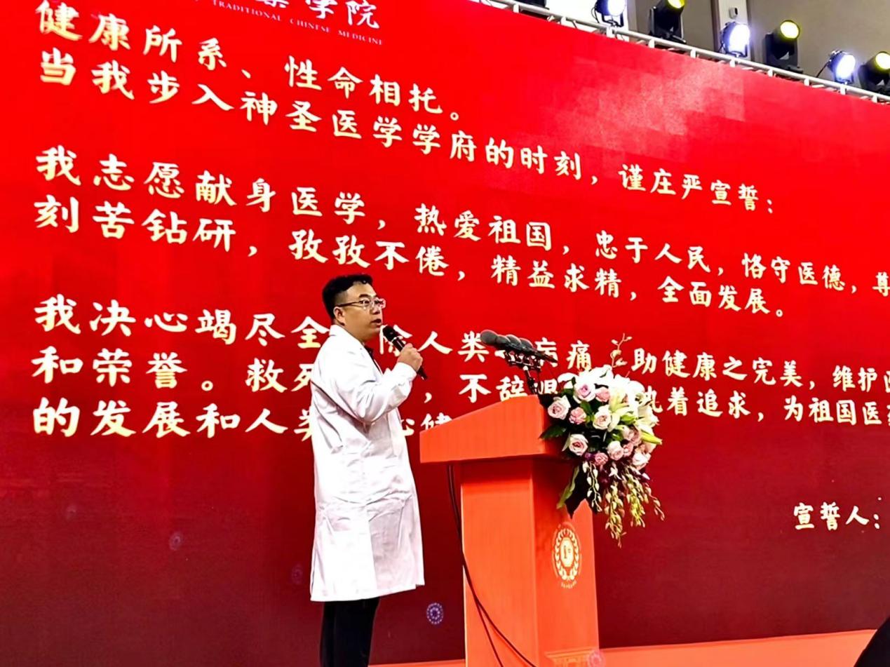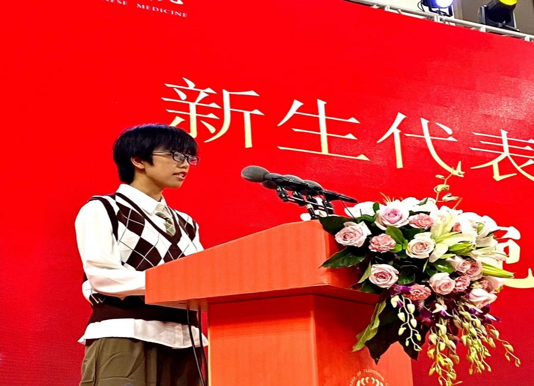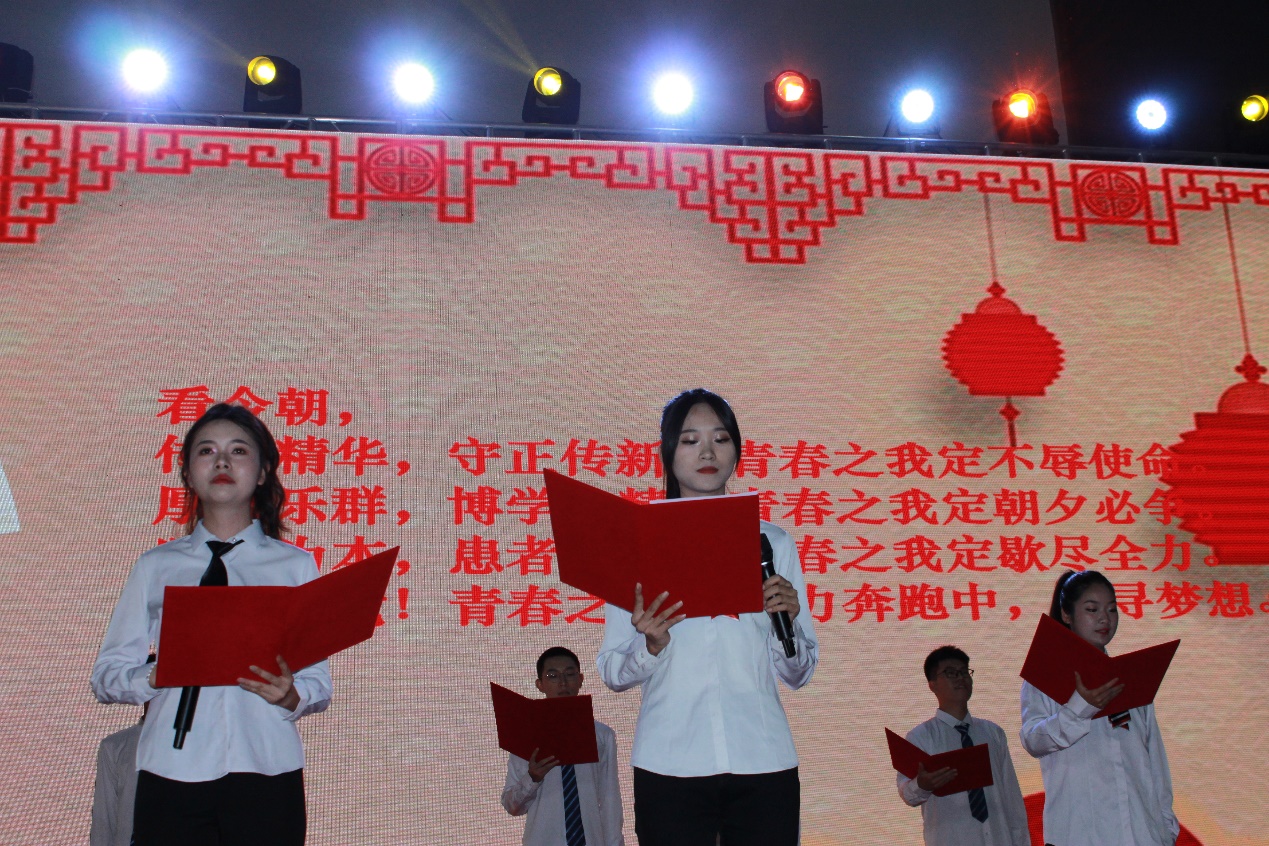 新新生代表杨惋贻同学发言,代表同学们作出以下承诺:为了实现成为一名合格医生的梦想,学习上我们要焚膏继晷,持之以恒。“唯有今日的拼搏才可换取明日的梦想成真。“道虽迩不行不至,事虽小不为不成。”表达了保持知行合一,将理论与实际结合,让知识走进生活,勤学善问,积极上进,共创辉煌!