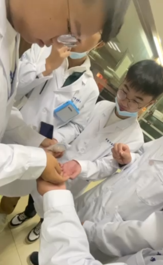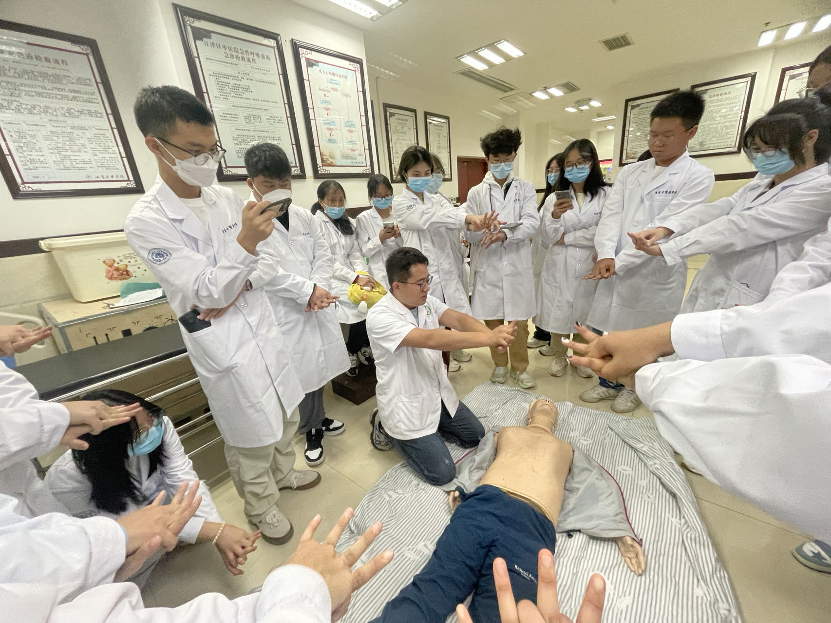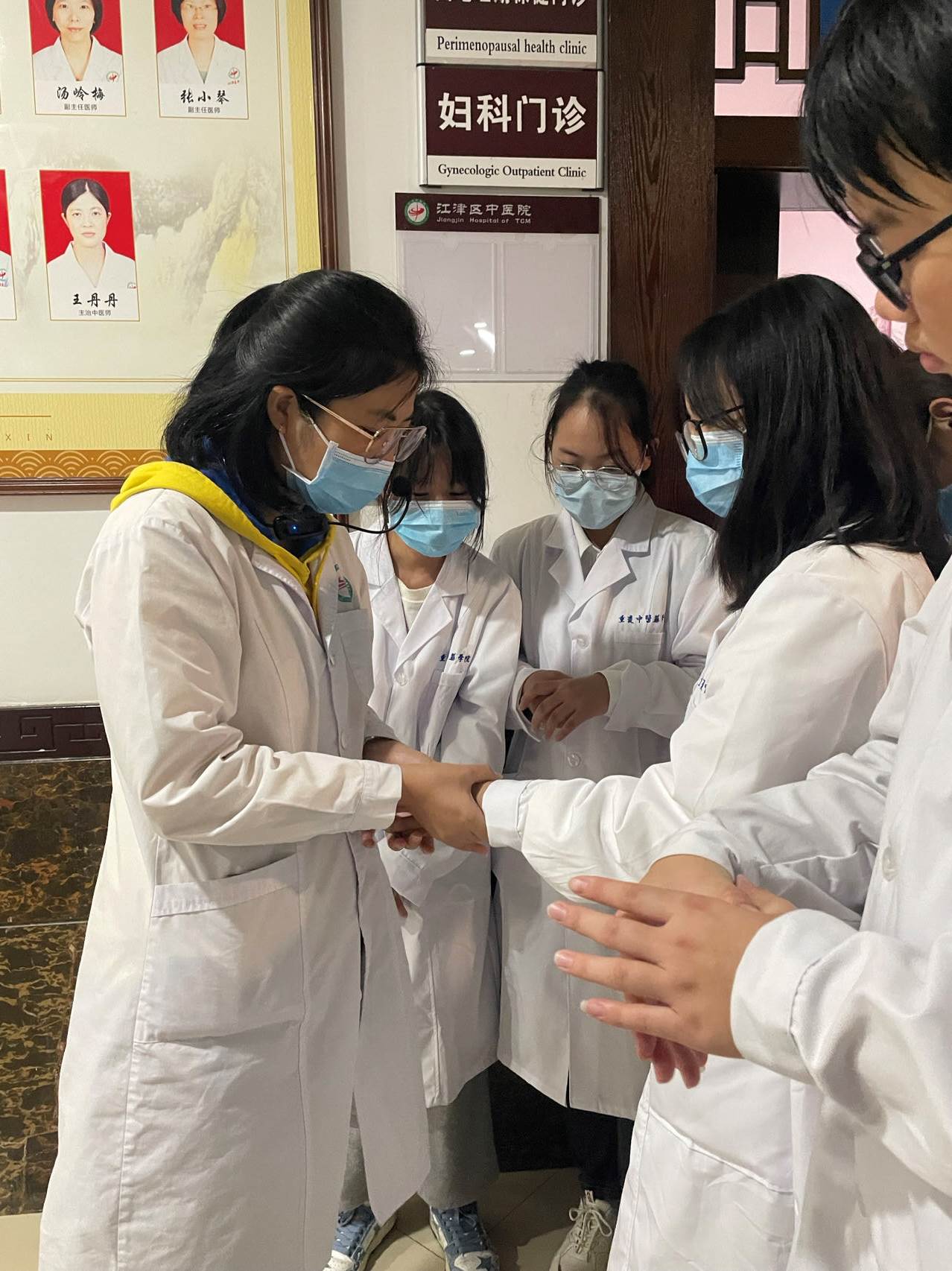 在急诊科,同学们深入抢救室参与了一场“面对面”的心肺复苏教学,深刻认识到掌握急救措施的重要性;妇科带教老师现场讲解痛经的选穴及治疗;在中医护理门诊,同学们体验了刮痧疗法缓解肩背酸痛的疗效;在中药房更是调动了同学们的五感,不仅听药解,闻药香,识药形,还尝到了五味子、山楂、枸杞、人参、白术等药物和医院自制健脾“棒棒糖”,将中药知识潜移默化地印在了脑海。半天的门诊体验学习让同学们对临床诊疗有了初步的认识,不少同学表示此次学习获益匪浅,进一步坚定了学中医的信心,增强了责任感和使命感。