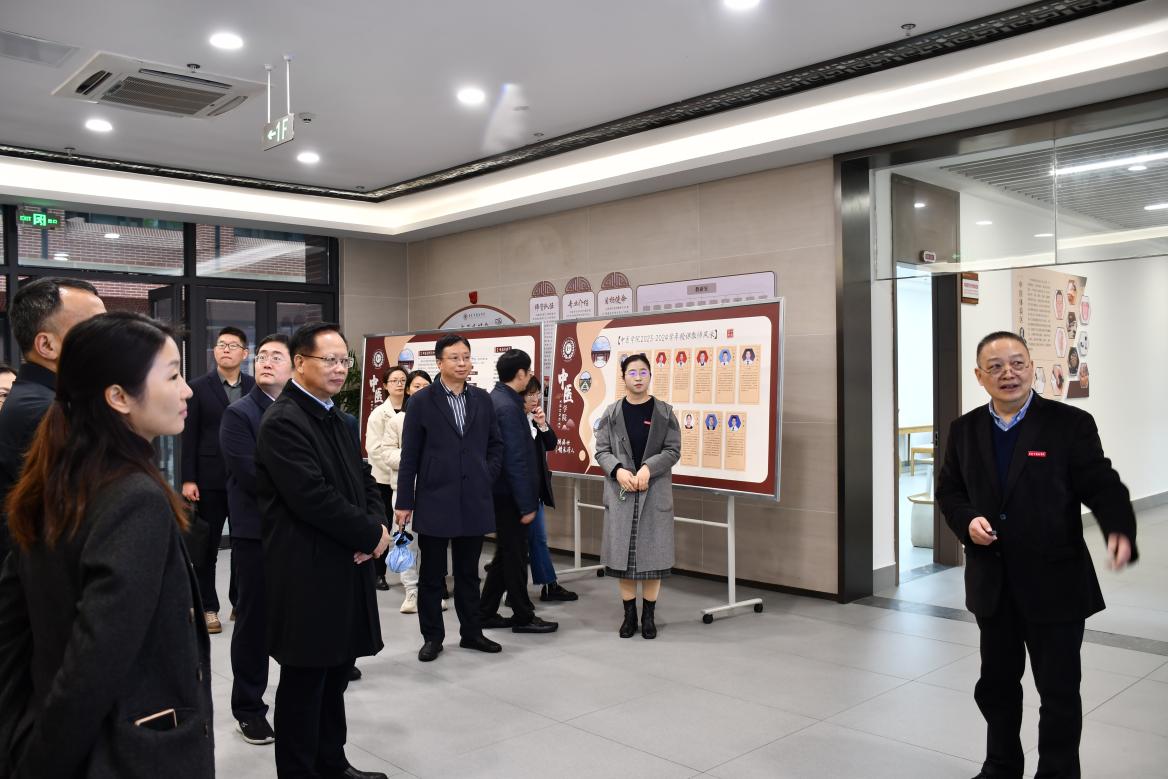 秦怀金一行参观调研了米兰官网古中医研究院、基础医学院、中医学院,在留小忠教授师承实验班教学课堂上,他与学生们亲切交流,详细询问学生们的课程安排和校园生活等情况,并嘱咐同学们:学习、身体都要抓牢,要保证体育运动的时间;学中医大有可为,希望同学们坚持对中医学习的热爱,做好中医药传承接班人。