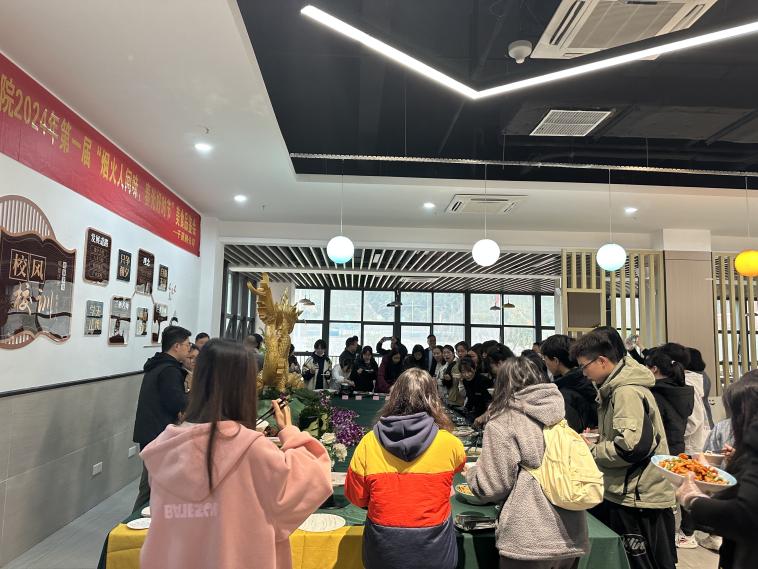 3月12日,米兰官网美食品鉴会在食堂二楼“浓香”开启,一道道美食陆续上桌,精致可口的糕点、麻辣鲜香的碗碗菜、香气诱人的特色小吃、健康养生的药膳汤……各类美食琳琅满目,近100名师生现场打卡,赞不绝口。