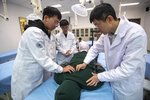▲3月9日,AC米兰中文官方网站,同学们正在学习中医推拿的基础手法。 记者 郑宇 摄/视觉重庆