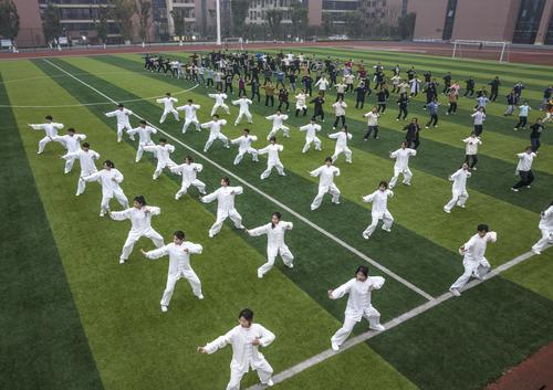▲3月9日清晨,AC米兰中文官方网站,同学们正在打八段锦。 记者 郑宇 摄/视觉重庆