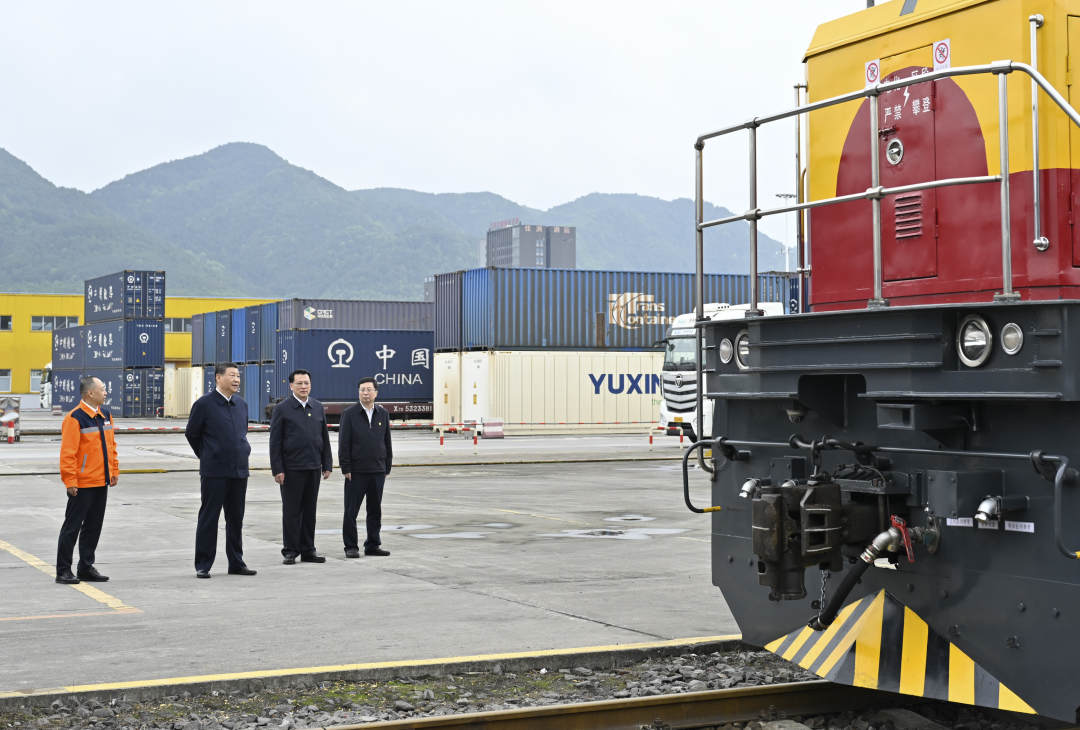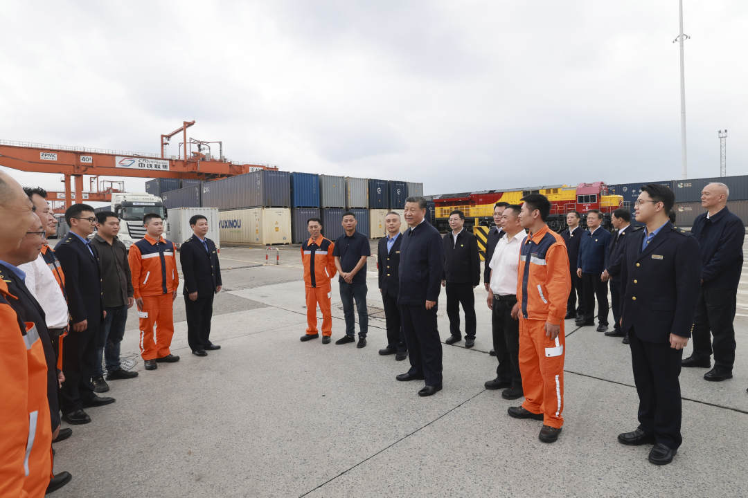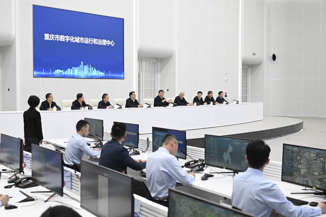 4月22日至23日,习近平总书记在重庆市考察调研。他先后来到重庆国际物流枢纽园区、九龙坡区谢家湾街道民主村社区、重庆市数字化城市运行和治理中心,了解当地加快建设西部陆海新通道、实施城市更新和保障改善民生、提高城市治理现代化水平等情况。