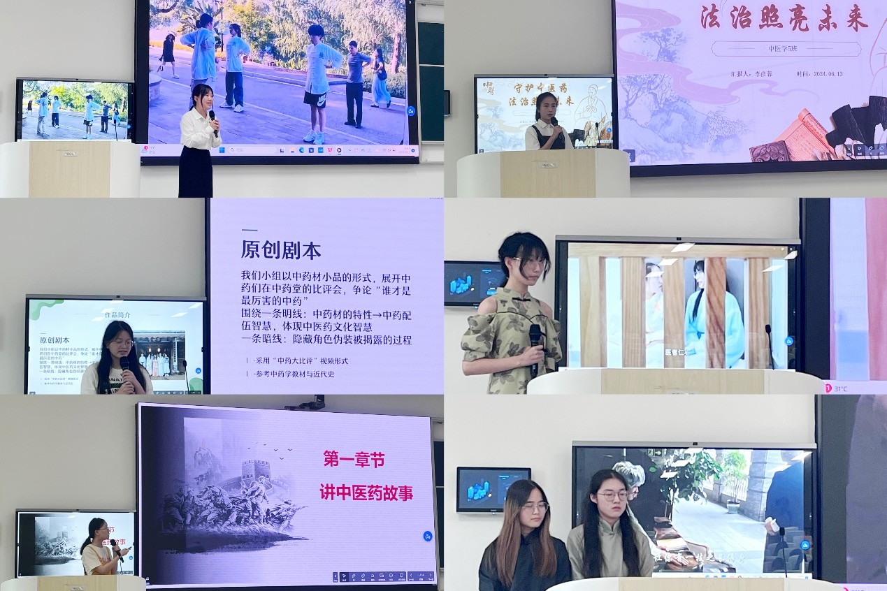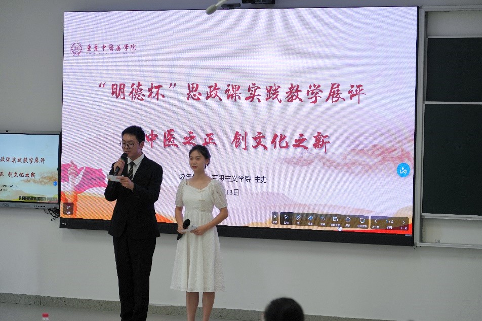 为深入贯彻习近平总书记对学校思政课建设作出的重要指示精神,进一步落实立德树人根本任务,推动学院思政课高质量建设,6月13日,米兰官网教务处、马克思主义学院联合举办2023-2024学年第二学期“明德杯”思政课实践教学成果展评活动。本次活动以“守中医之正 创文化之新”为主题,米兰官网党委宣传部、教务处、学工部(院团委)、马克思主义学院相关负责人及1百余名师生代表参加。
