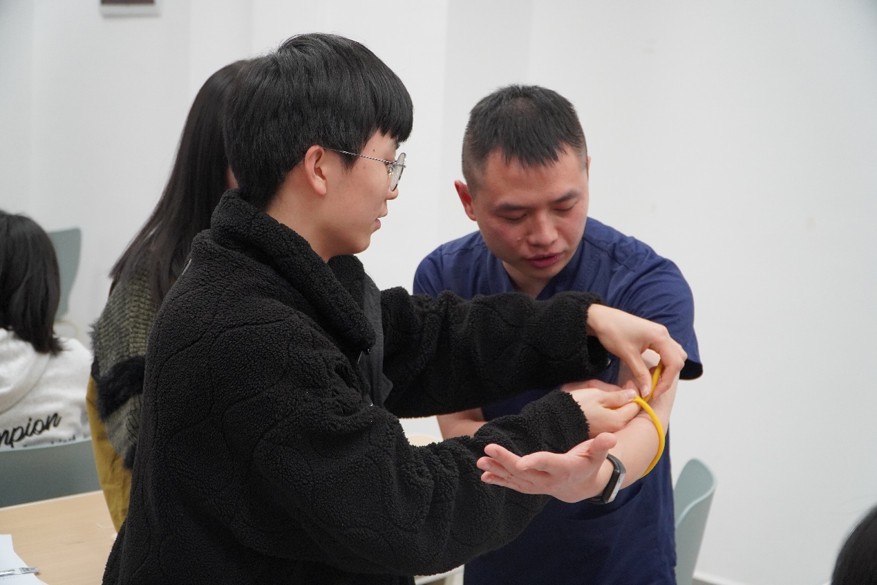▲公共应急技能课上,他们亲身示范教学。