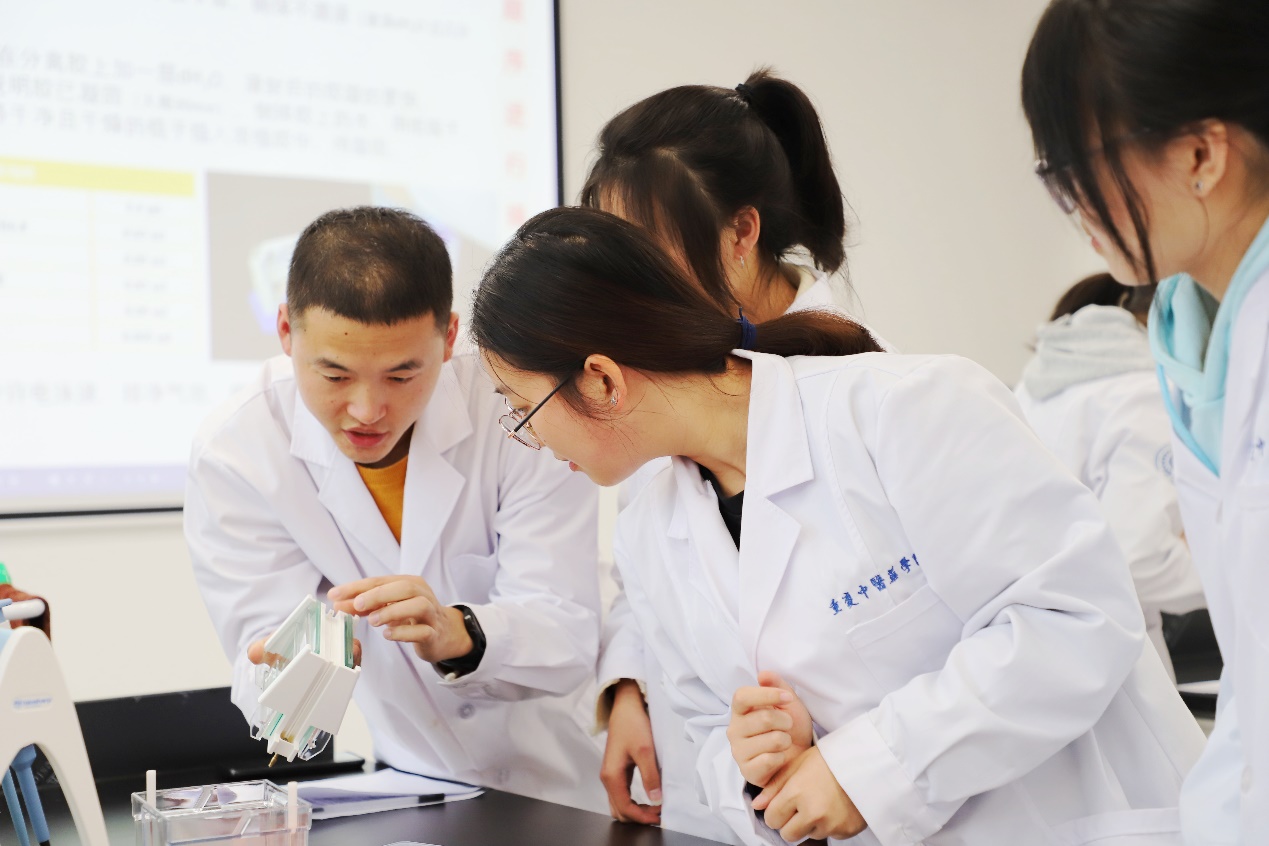 ▲生物医学常用实验技术课上,他们和学生们一起探知生物医学实验技术的基本原理和操作方法。