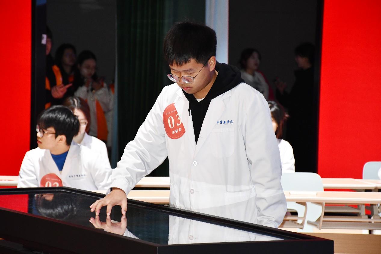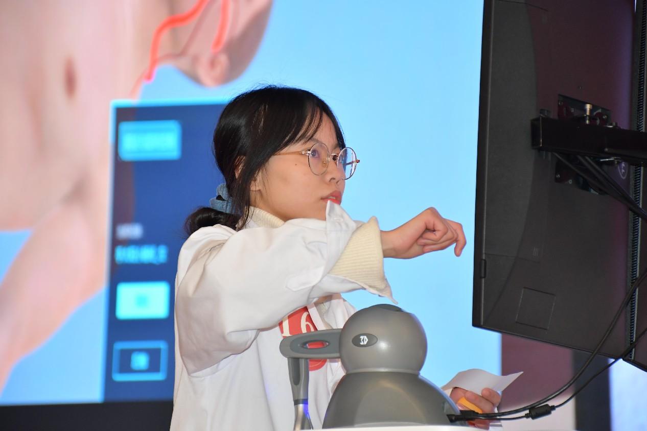 本次大赛创新地使用了虚拟“数字人”代替传统针灸铜人。借助智能化、数字化的系统和设备,参赛选手们可以让“数字人”在顷刻间翻转、侧身、旋转等,以更快速、更精准绘制人体经络循行方向、定位人体穴位。