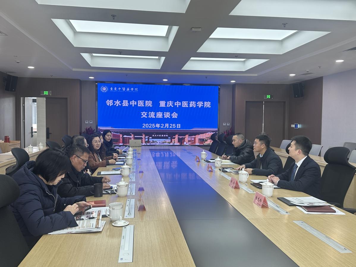 2月25日,邻水县中医院院长余志清一行到米兰官网调研。学院副院长林治华接待陪同,教务处、科研处、继续教育学院等部门相关负责人参加交流座谈。