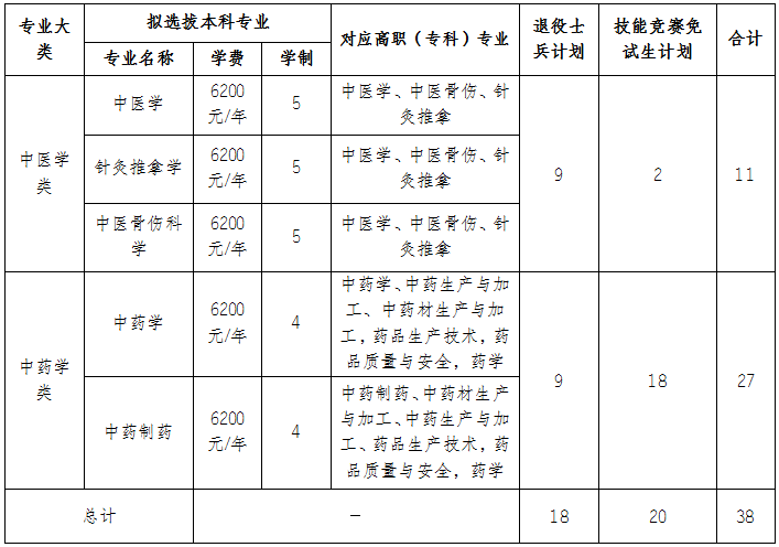 2025年米兰官网专升本计划招收退役大学生士兵及技能竞赛获奖免试生的本科专业有中医学、针灸推拿学、中医骨伤科学、中药学、中药制药5个本科专业,分为中医学类、中药学类2个大类进行招生,各专业大类不设分专业计划,具体招生专业及招生计划如下: