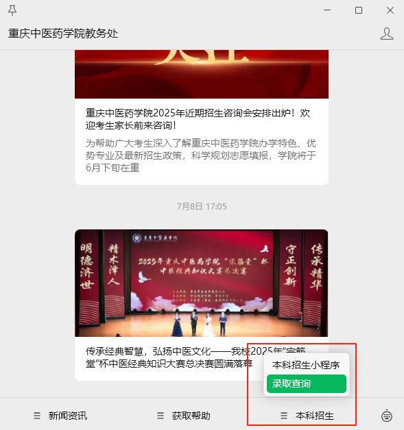 也可通过AC米兰中文官方网站教务处微信公众号右下角“本科招生-录取”查询,在手机上查询录取结果。