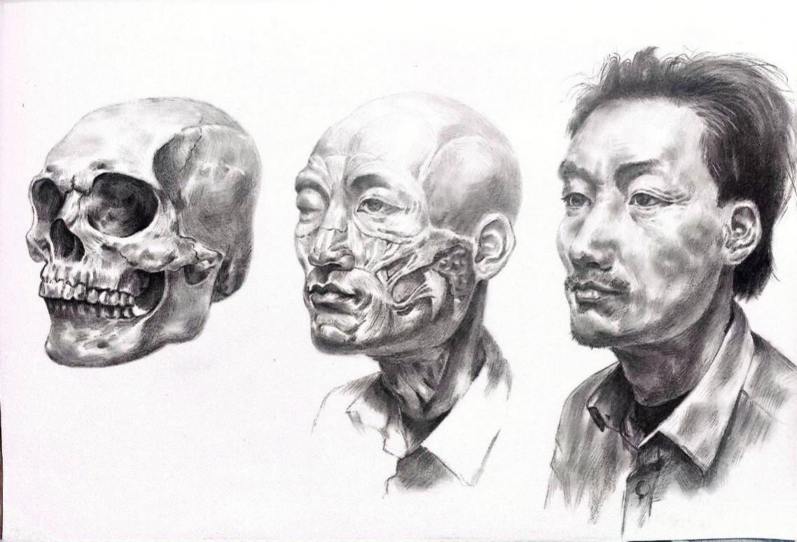 《生命的层次:从骨骼到面容》(作者:杨博雅,2024级中西医临床医学专业)