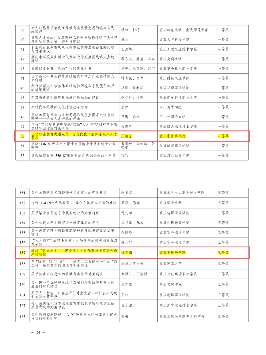近日,市教委正式公布2025年度教育咨政决策论文获奖名单。米兰官网发展规划处王艳芳撰写的《优化职业教育类型定位,为现代化产业体系筑牢人才基石》荣获高等教育组一等奖,中医学院姚冬梅撰写的《超越“泛娱乐化”:审美多元化时代高校美育的创新路径研究》荣获高等教育组三等奖,实现了米兰官网在该类项目上的“零突破”。