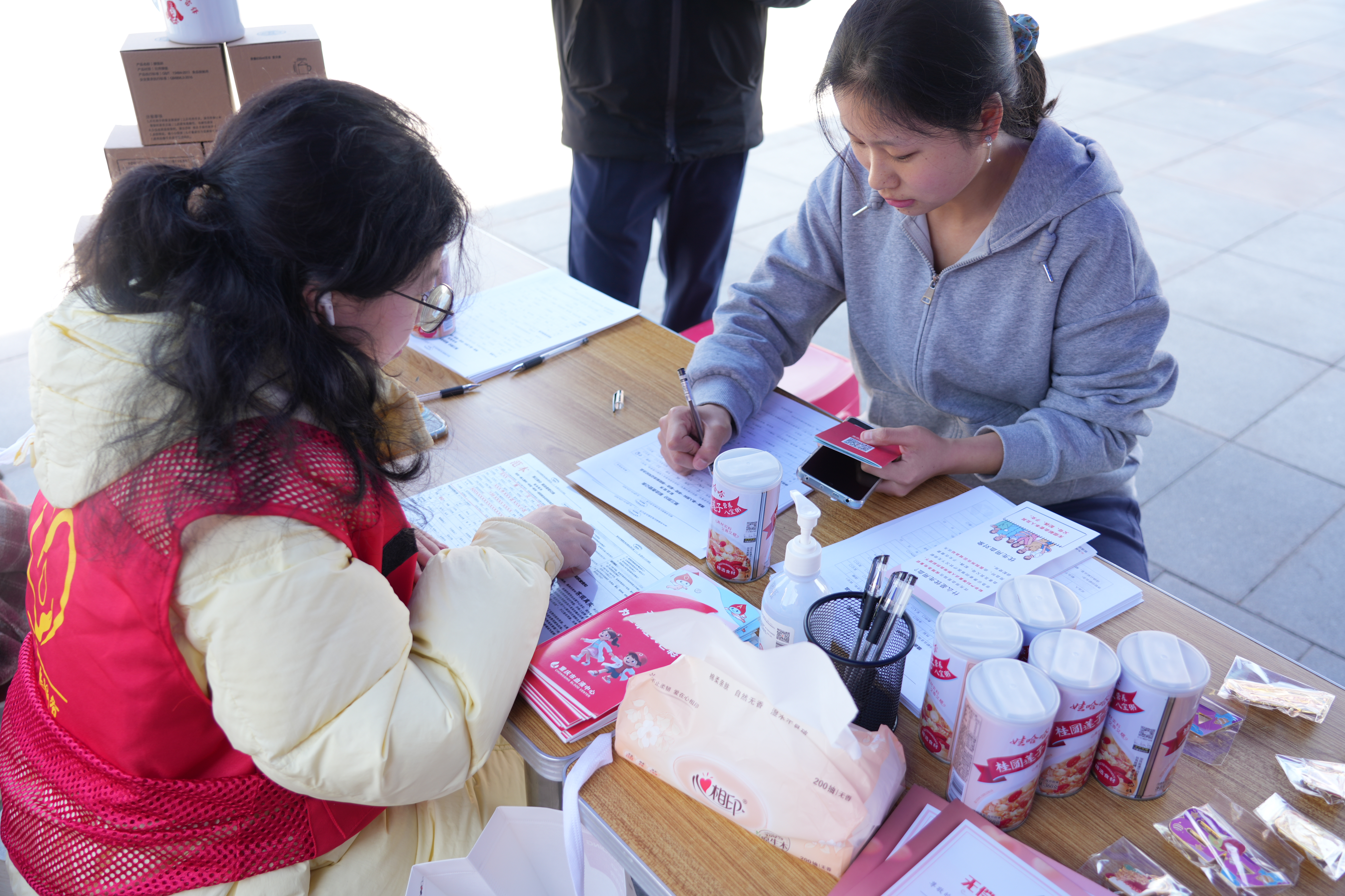 活动现场,闻讯而来的师生们在志愿者的引导下有序地进行登记、体检、初筛。人群中,既有刚下课的学生,也有行政岗位的教职工,还有后勤一线的食堂工作人员。他们用滚烫爱心为乍暖还寒的初春增添了最温暖的色彩。