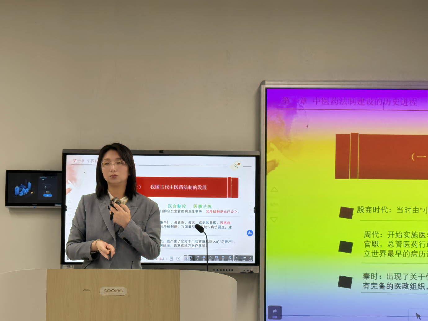 12月11日,院党委常委、副院长唐丽灵走上思政讲堂,以“中医药法制建设:构建传承创新发展的坚固基石”为题,为2024级中西医临床学1、2、3班的同学们上了一堂精彩的思政课。