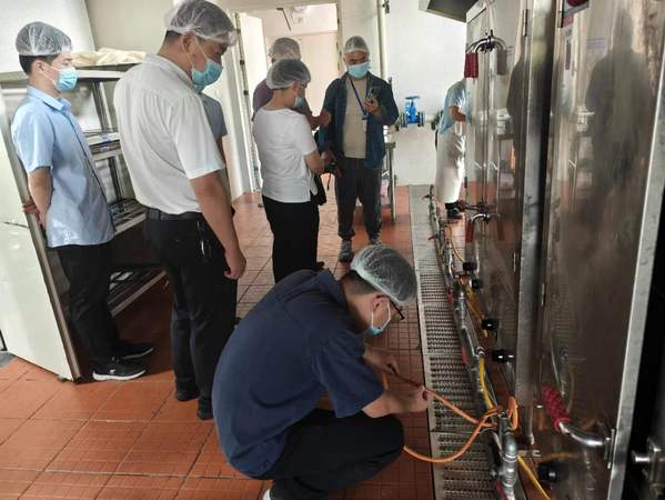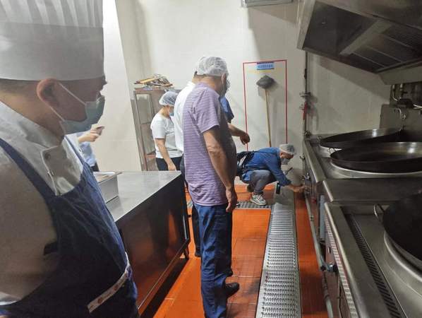 培训结束后,孙科长一行对食堂天然气管道和所有用气设备进行了安全隐患排查,对检查中发现的燃气灶具连接管道、天然气热水器具安装使用不规范等问题提出了整改意见和要求,并就燃气安全、设备使用等方面与大家进行了深入交流。