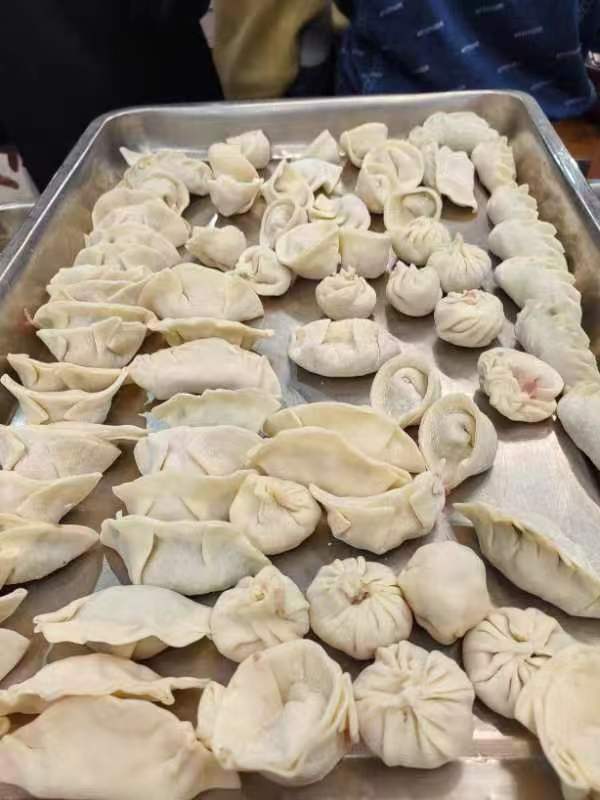 活动中,老师和同学们在食堂工作人员的帮助下一起包饺子,大家分工有序,有的负责调馅,有的负责包制,尽情发挥自己的创意。经过一个多小时的紧张忙碌,各种形状和口味的饺子新鲜出炉,大家品尝着自己亲手制作的饺子,幸福而满足。