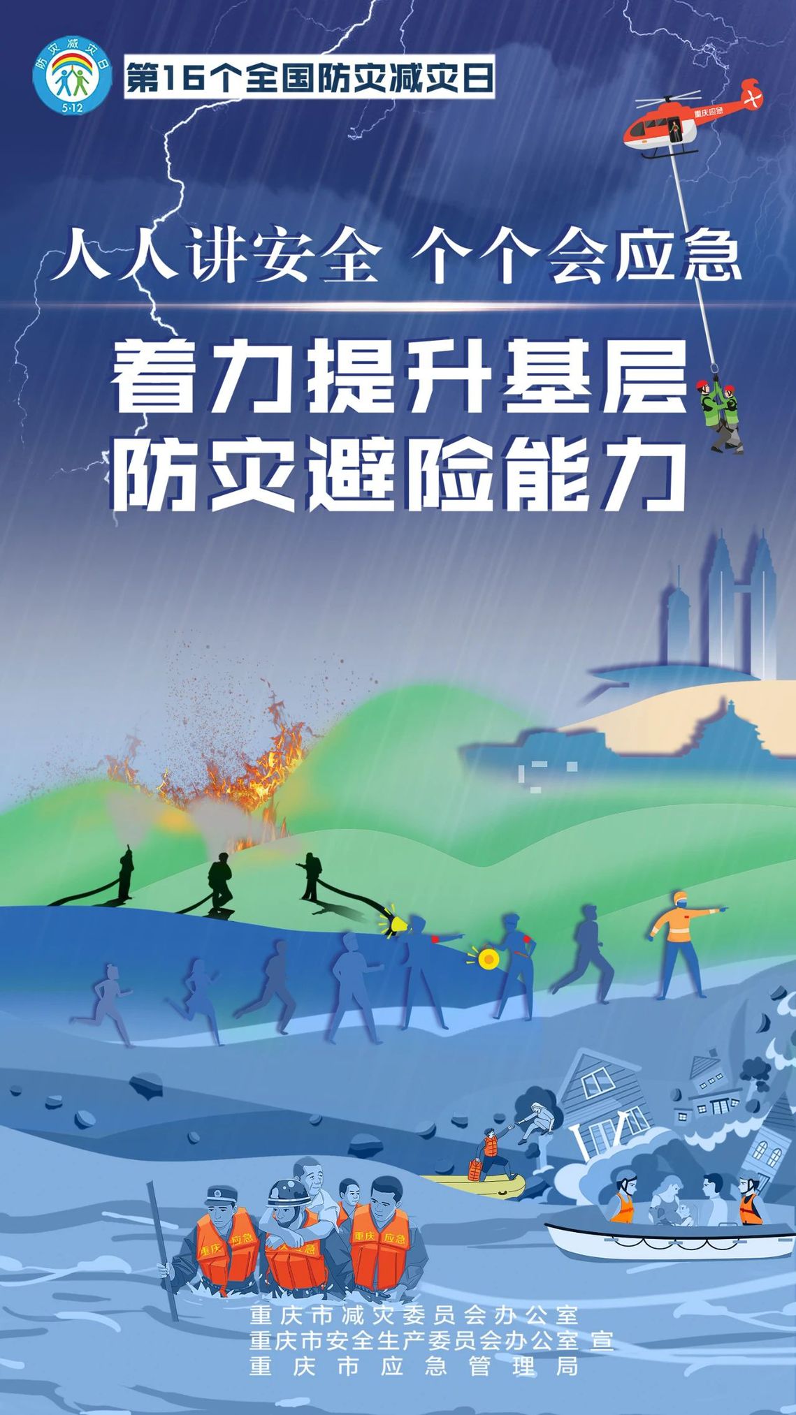 5月12日是第16个全国防灾减灾日,主题是“人人讲安全、个个会应急——着力提升基层防灾避险能力”