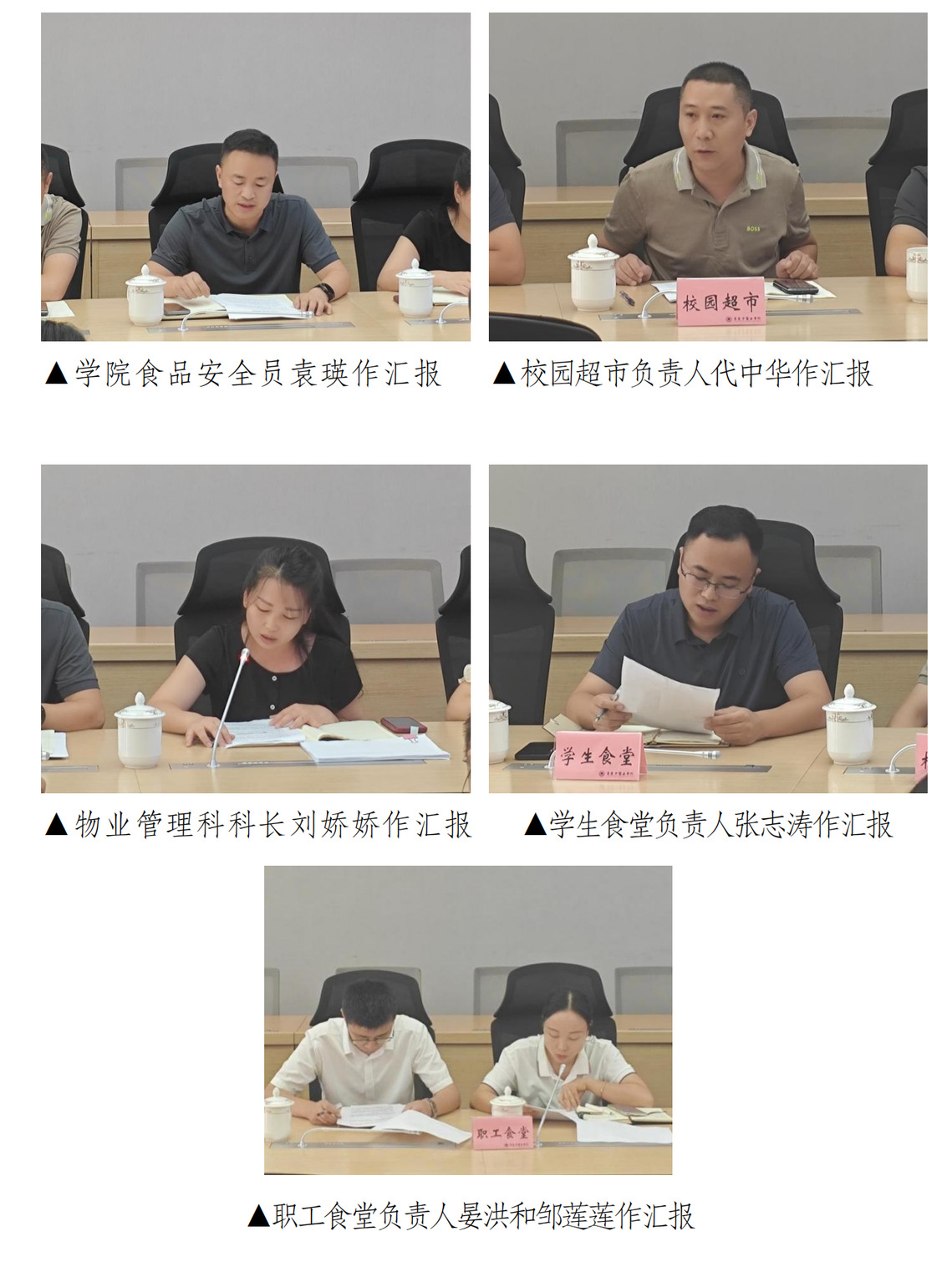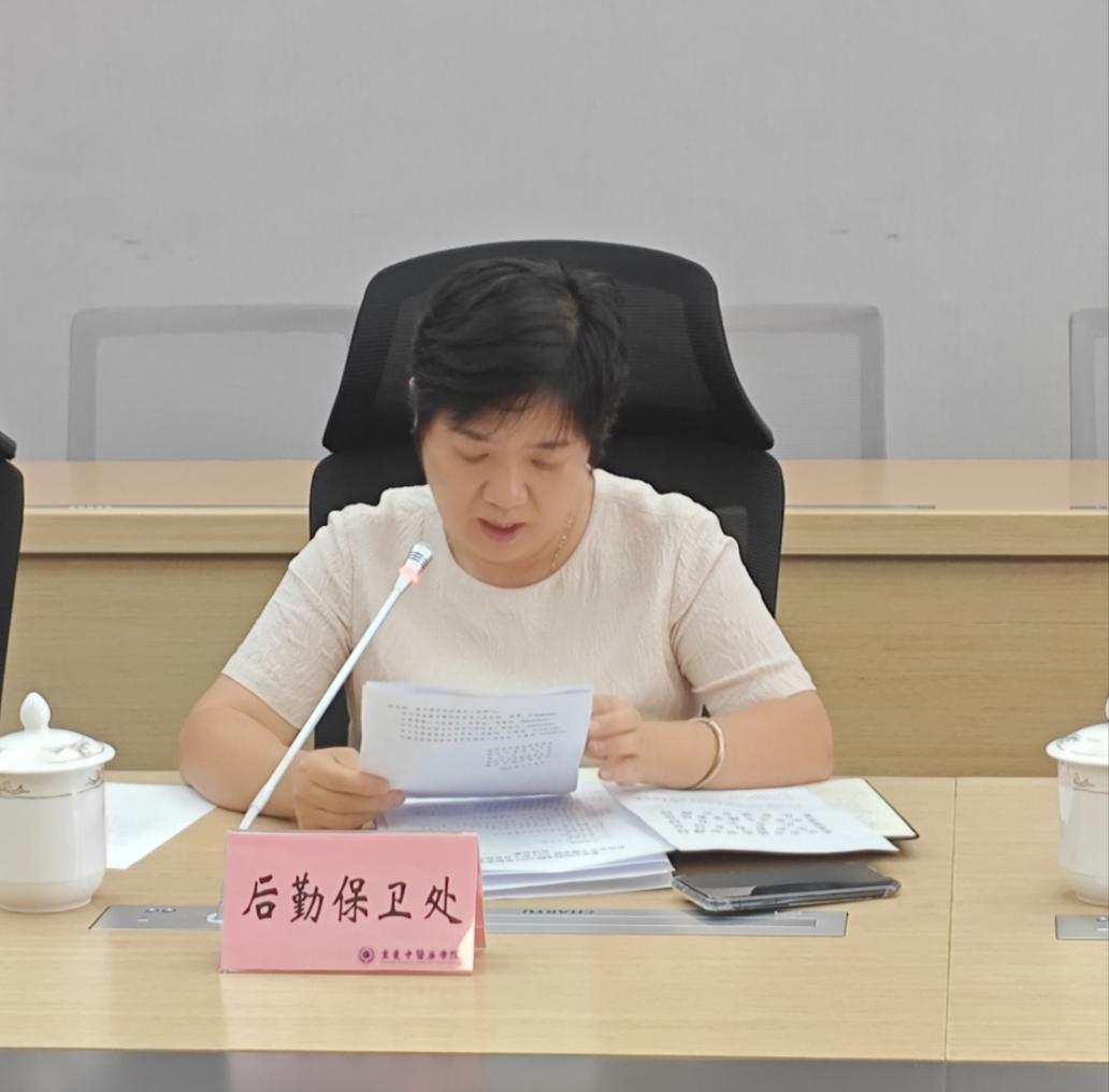 学院食品安全员袁瑛、物业管理科科长刘娇娇及食堂和超市负责人分别就开学以来食堂和商业配套用房的运行情况及食品安全监管情况在会上进行了汇报发言。随后,与会人员围绕学校食品安全的薄弱点和广大师生反馈的意见建议等内容展开交流讨论。