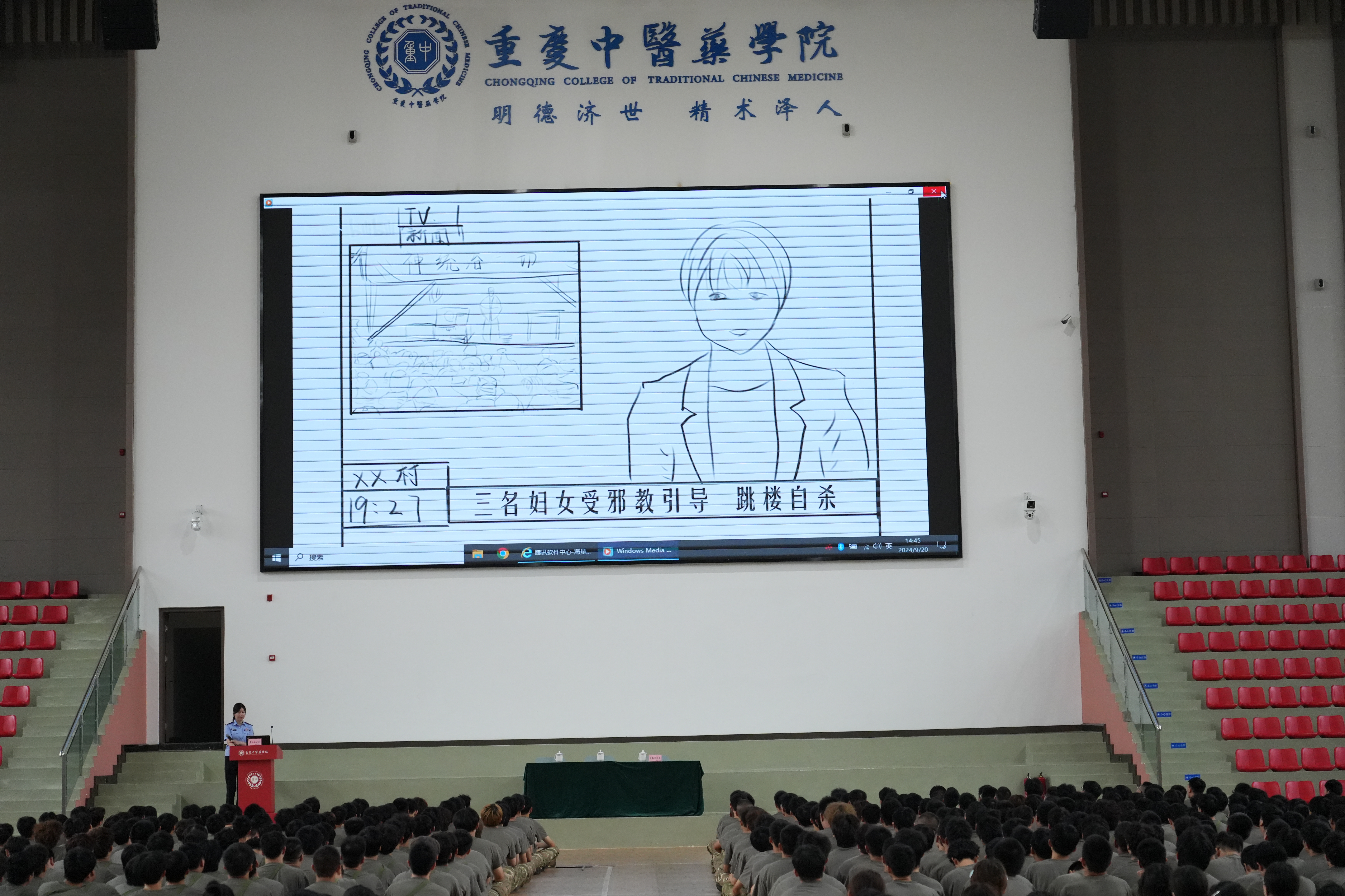 璧山区公安局王晓珍警官以生动的案例和详实的资料,向同学们介绍了邪教的本质、特征、危害以及“反邪防邪”的知识。