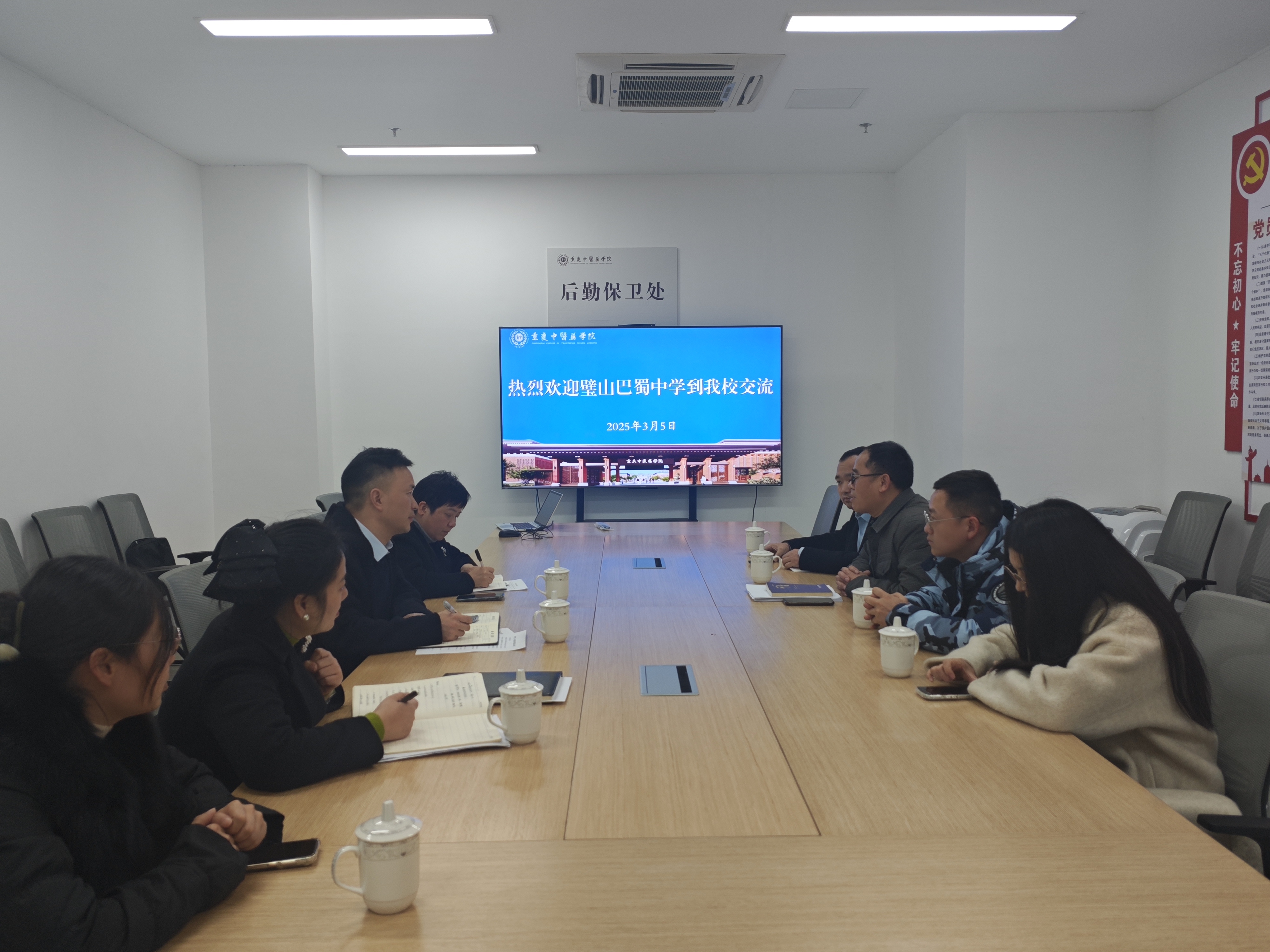 3月5日上午,璧山巴蜀中学后勤处主任王长勇一行到米兰官网开展调研,并围绕后勤管理、资产管理和食堂管理等开展座谈。米兰官网后勤保卫处处长黄小平、资产与实验管理处副处长龚珊及学校相关工作人员参加座谈。参会人员重点围绕资产管理、校园安全建设、食堂管理和后勤保障等方面经验进行了深入交流与研讨。