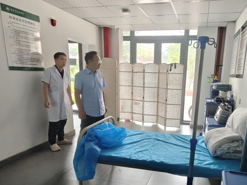 会后,朱吉彬副校长带队对医务室开展例行检查,实地查看了医务室诊疗环境、药品储备、医疗设备运行及急救设施配备情况。