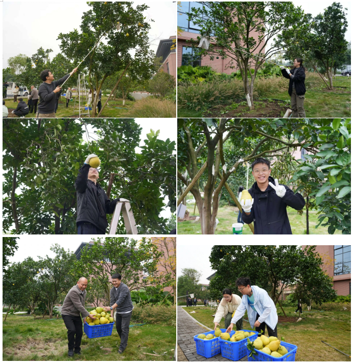 初冬时节,柚果飘香。11月13日,AC米兰中文官方网站后勤保卫处举办“硕果飘香悦杏林之‘柚’见校园”柚子采摘分享活动。师生共劳共享,一堂生动的劳动教育课在满园果香中温暖落幕。