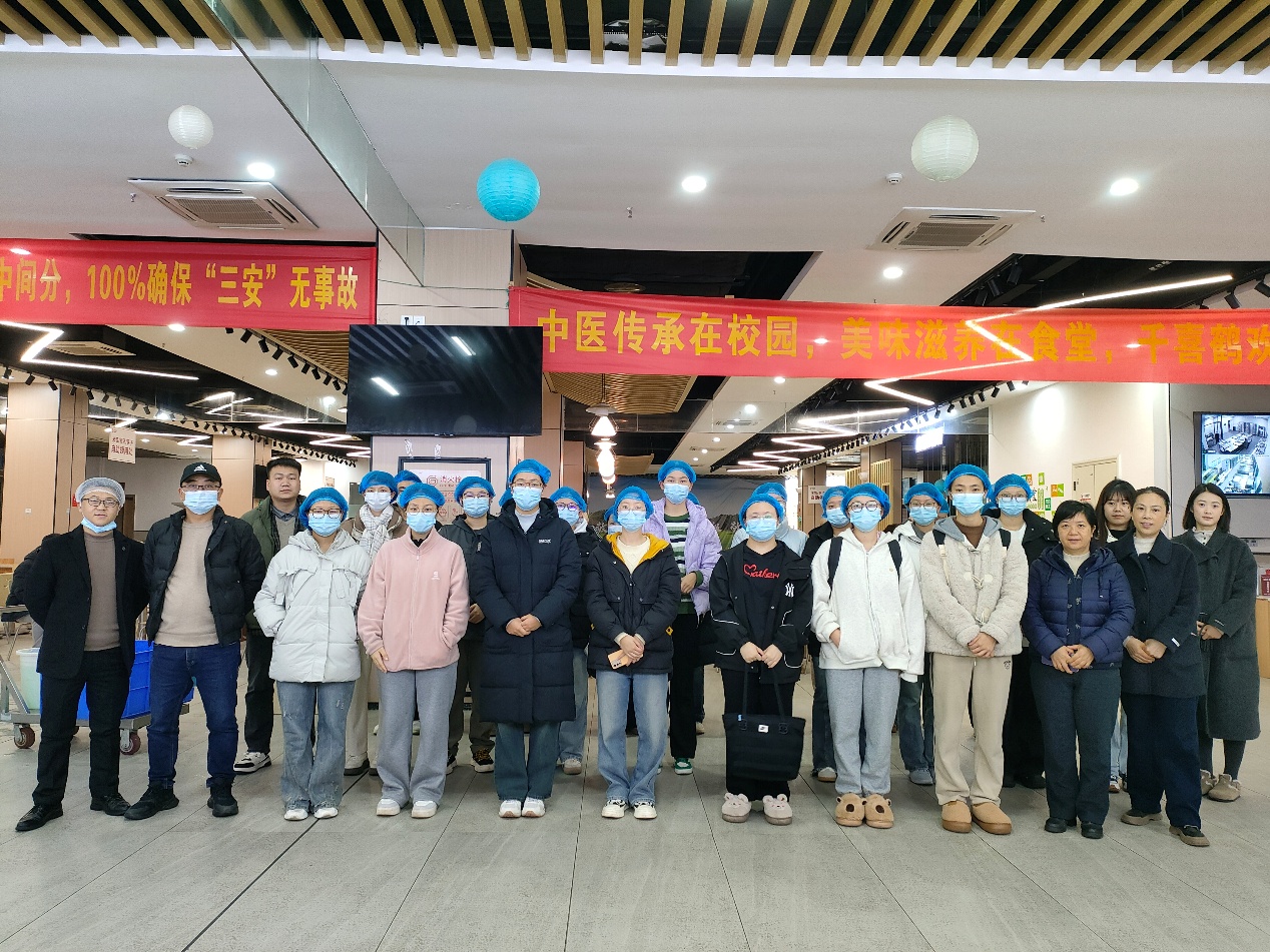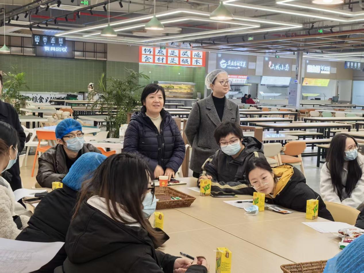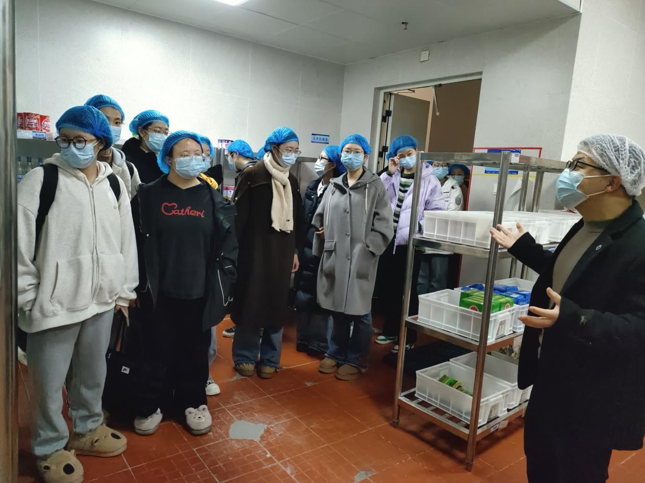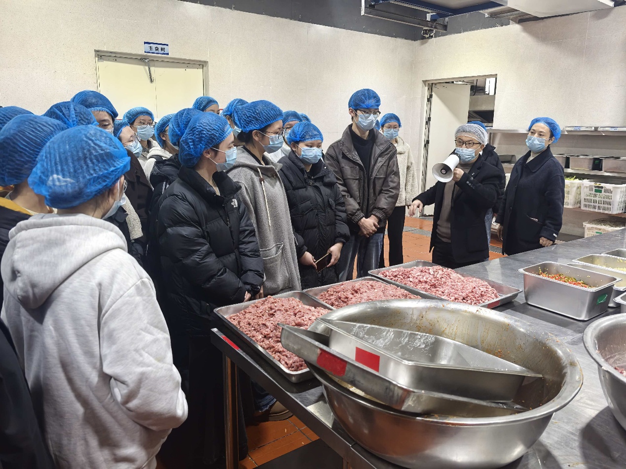 随后,师生代表在食堂负责人的带领下先后参观了南、北区食堂食品原材料库房、原材料验收区、加工清洗区、切配间、烹饪间、售餐间、原材料检测室等多个工作区域,“零”距离地了解了食品从原材料到留样再到出餐的各环节操作规范和流程。