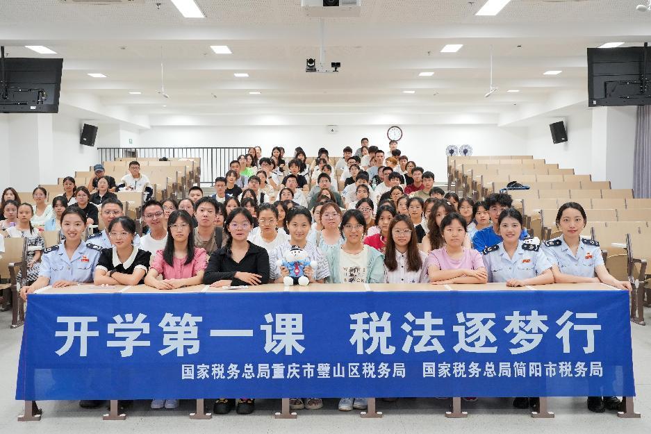 9月11日上午,在学院教学楼E1-205会议室,重庆市璧山区税务局、重庆市璧山区医疗保障局、四川省简阳市税务局走进米兰官网,联合开展“开学第一课 税法逐梦行”普法宣传活动。通过播放税务主题短片、讲解大学生医保和个人所得税相关政策、互动答疑等形式为师生们带来了一场精彩的税法知识讲座,解答了大学师生最为关切的税费政策和热点问题,进一步加深了对税法知识的理解和认识。她们以生动的案例、详实的数据,深入浅出地讲解了税收政策及其实践应用,赢得了在场师生的阵阵掌声。