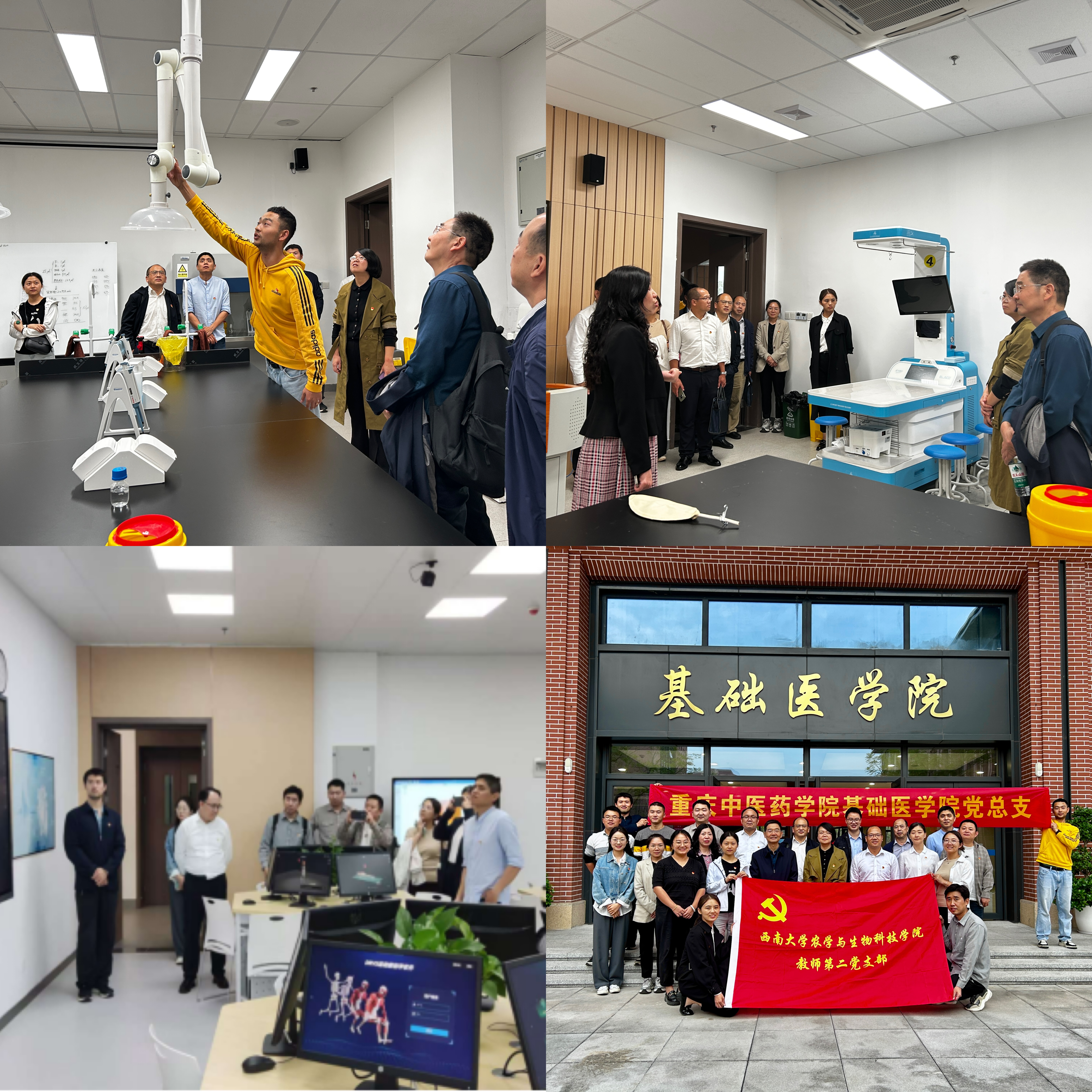 最后,西南大学农学与生物科技学院张建奎副院长对本次学习进行总结和发言,并主持开展教学研讨。两校教职工党员结合岗位职责和教学情况进行交流研讨和参观学习,西南大学农学与生物科技学院老师们对基础医学院教学设施设备和教学环境高度赞扬,并表示将在后续的教学科研工作中加强合作交流,促进双方共同发展进步。
