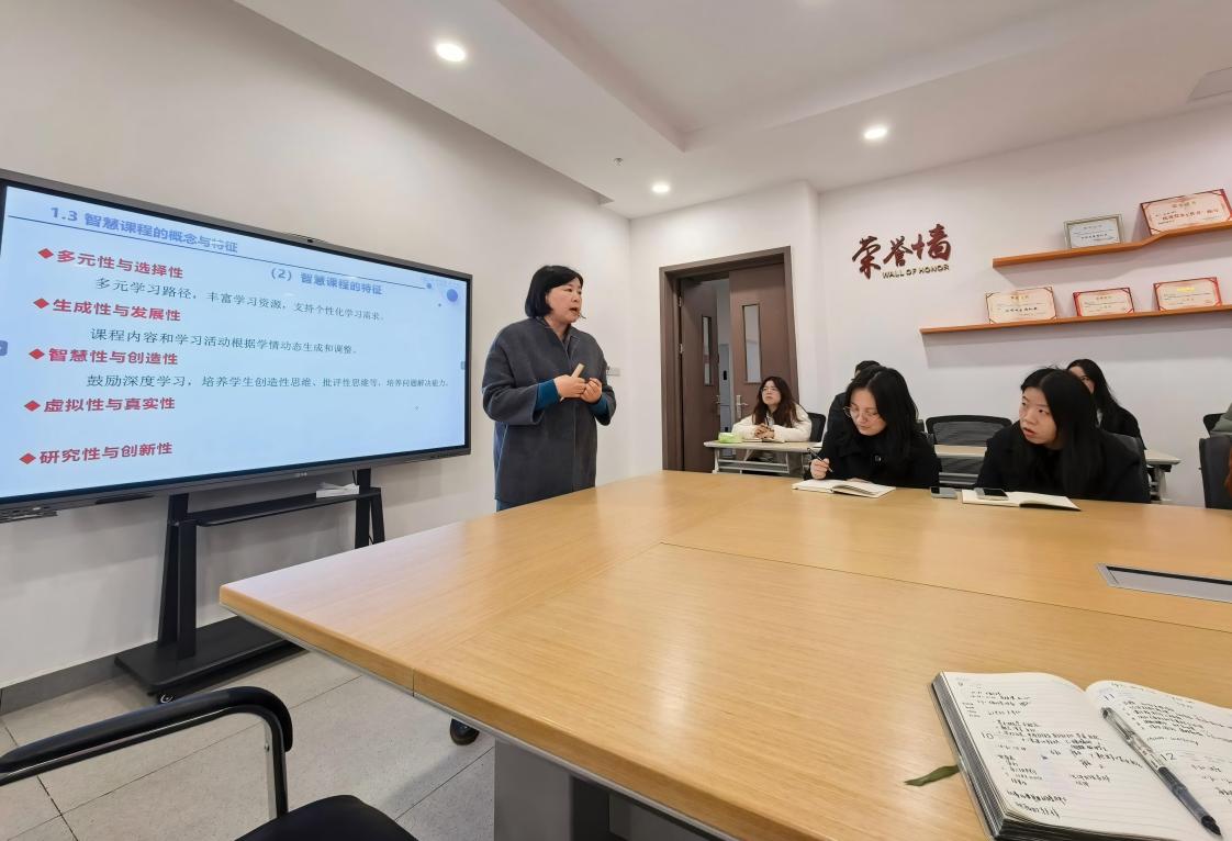 楼航芳教授回顾了我国课程建设从奠基模仿到内涵式发展的演进过程,指出智慧课程代表着教育信息化与教学深度融合的前沿方向,更是适配新时代人才培养需求的核心载体;结合自身研究与教学实践,她深入剖析智慧课程内涵,即以学生发展为中心,融合人工智能、大数据等技术,构建个性化、生成式学习体系,注重通过多元开放的学习路径、动态调整的教学内容及虚实结合的学习情境,系统培养学生批判性思维、创新能力与复杂问题解决素养。