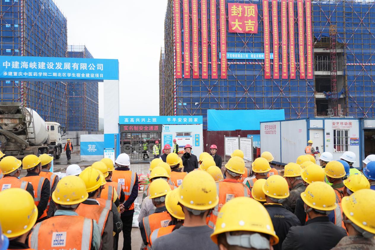 近日,学院二期北区学生宿舍建设项目主体结构全面封顶,标志着项目建设取得重大阶段性成果。学院副院长朱吉彬,党委常委、纪委书记唐樵出席封顶仪式,有关职能部门负责人参加。