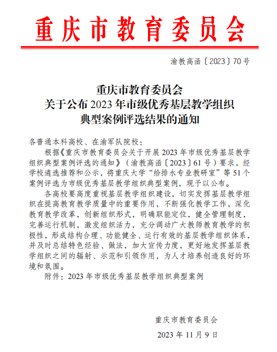 附件 重庆市教育委员会关于公布2023年市级优秀基层教学组织典型案例评选结果的通知