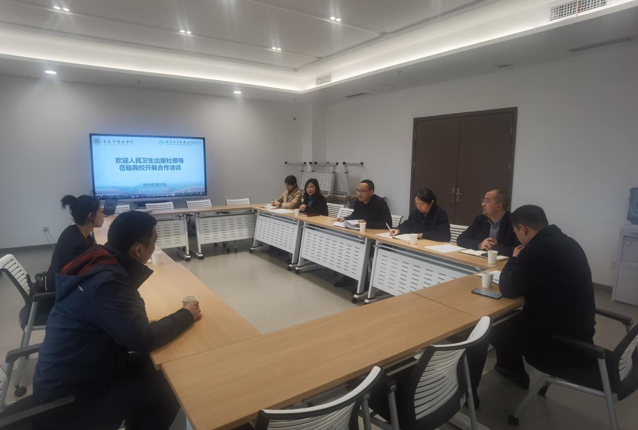 3月19日上午,AC米兰中文官方网站、AC米兰中文官方网站附属江津医院与人民卫生出版社西南分社就教材编写开展了合作洽谈。学院教务处副处长黄思琴、李娟,附属江津医院何伟院长、教务部主任张月等参加了本次座谈会议。