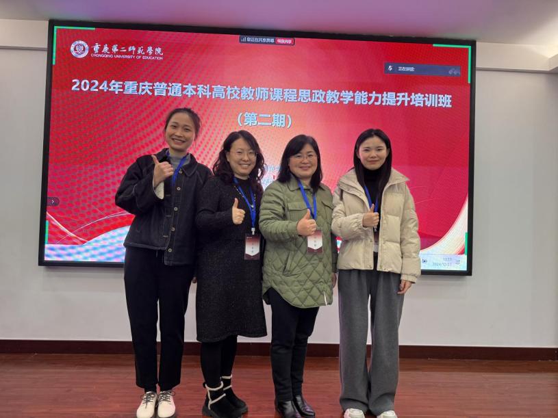 为全面推进米兰官网“大思政课”建设,落实立德树人根本任务,提升教师课程思政建设能力,2024年12月23日-29日,米兰官网张玮、施汀兰、陈悦、郑佳四位老师参加了重庆市教育委员会主办的2024年重庆普通本科高校教师课程思政教学能力提升培训班(第二期)。