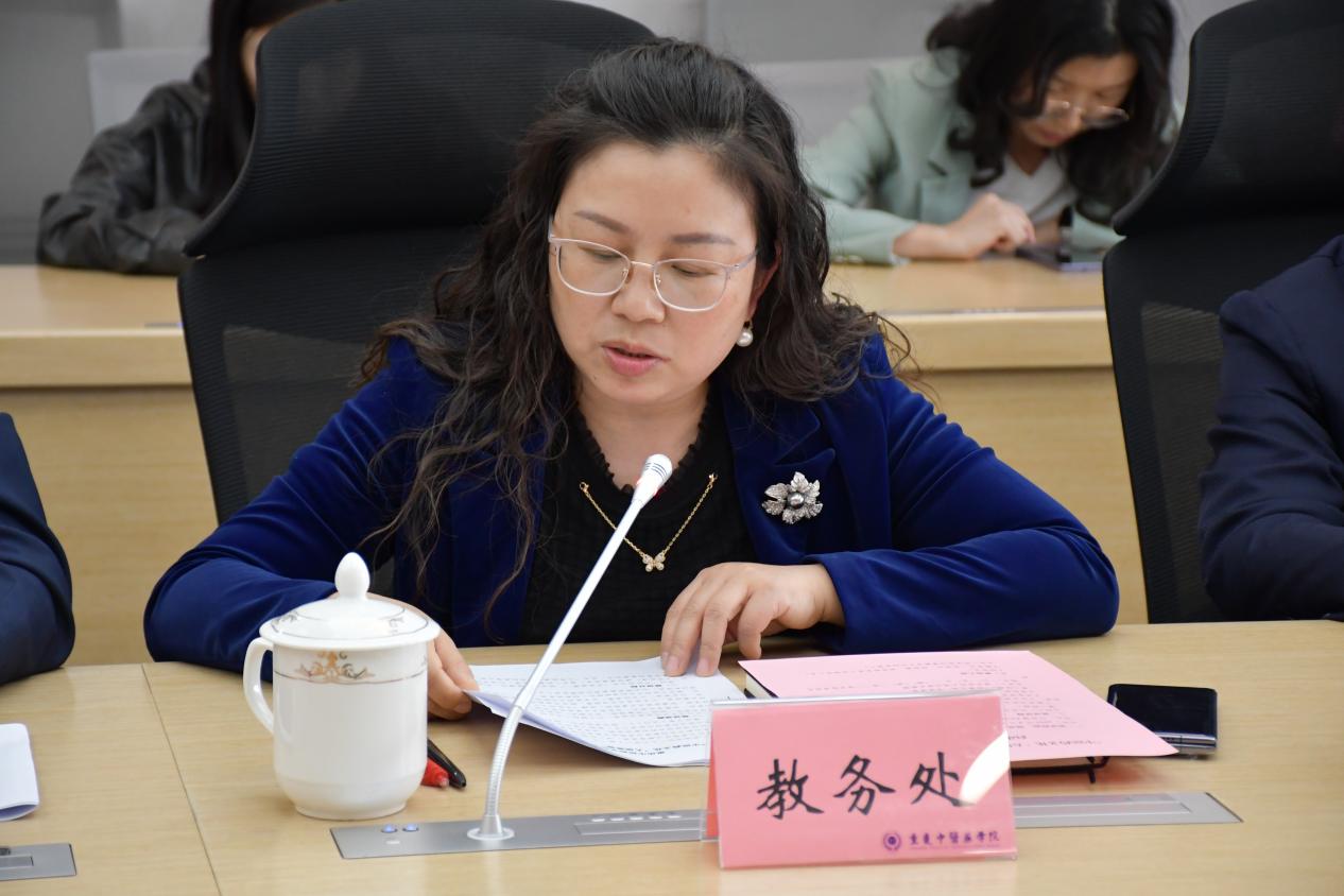 会上,教务处处长宗晓琴解读了《“中医药文化‘大思政课’”联合教研室建设方案》,说明了联合教研室的成立背景、建设目标、建设举措等,并对联合教研室的建设提出殷切期望。
