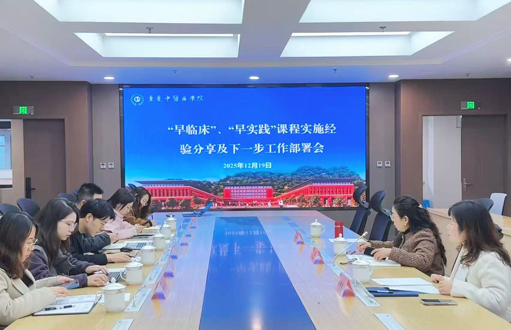会议伊始,教务处副处长黄思琴通报了学校“早临床”、“早实践”课程调研情况,系统梳理了课程启动以来取得的初步成效与存在的主要问题,为后续讨论提供了数据支持和现状依据。