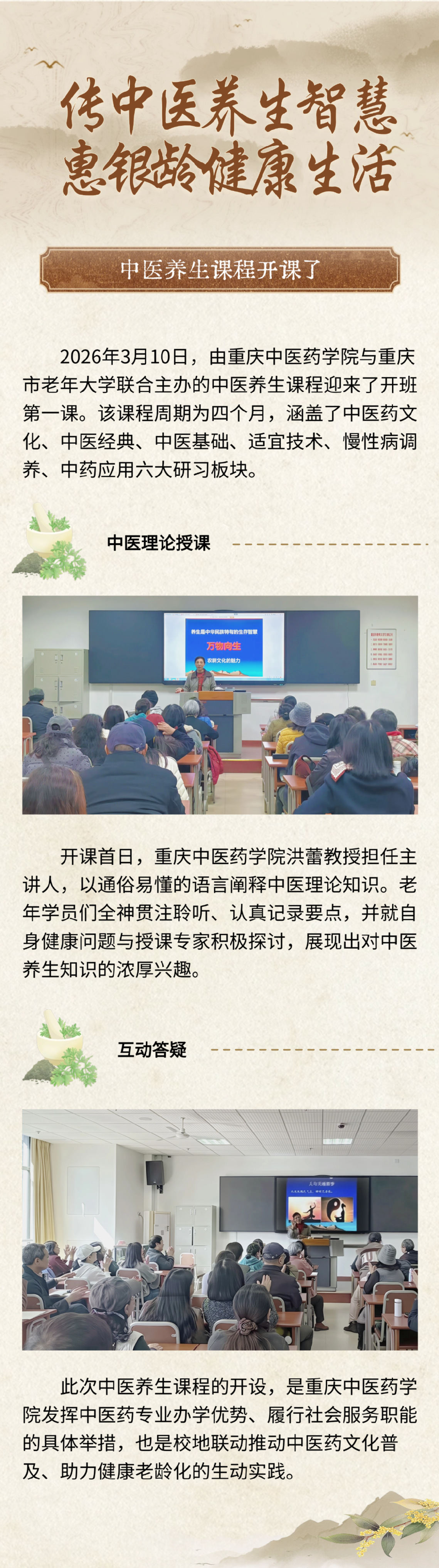 传中医养生智慧 惠银龄健康生活——中医养生课程开课了