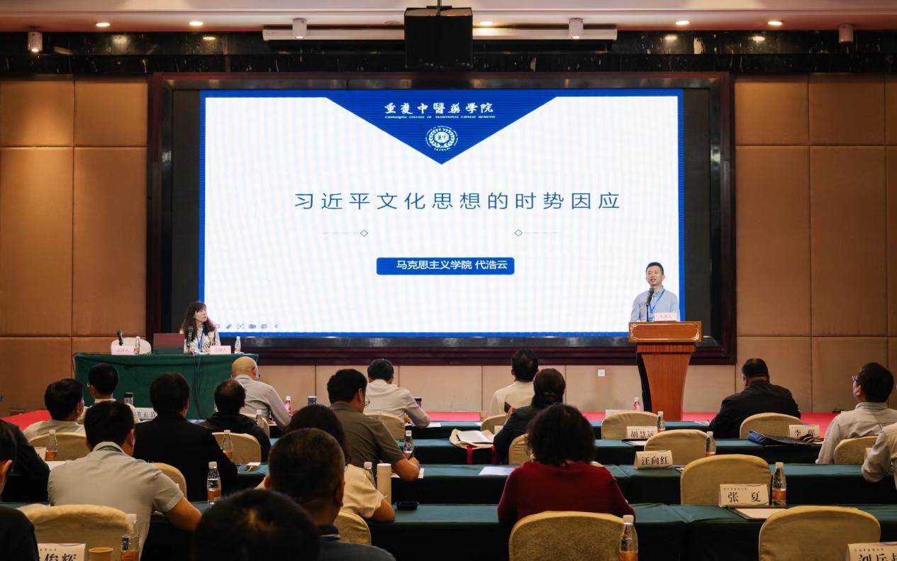 马克思主义学院院长代浩云教授以“习近平文化思想的时势因应”为题在大会上作交流发言。他分析了习近平文化思想诞生的时机和内蕴的大势,并根据高校思想政治工作因事而化、因时而进、因势而新的要求,介绍了米兰官网以习近平文化思想为指导,推动中医药文化育人的思考与实践。