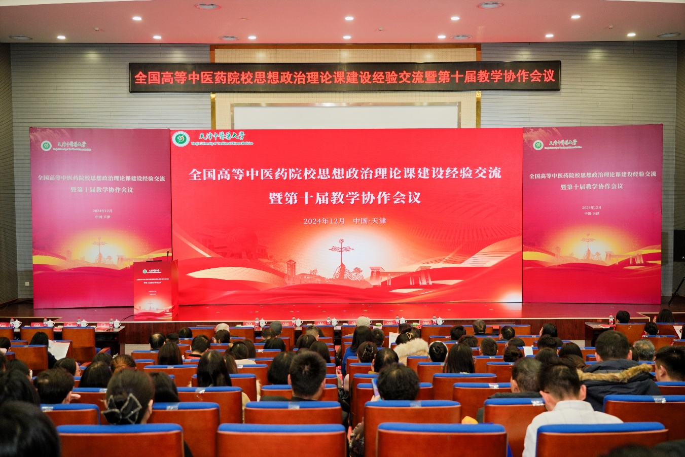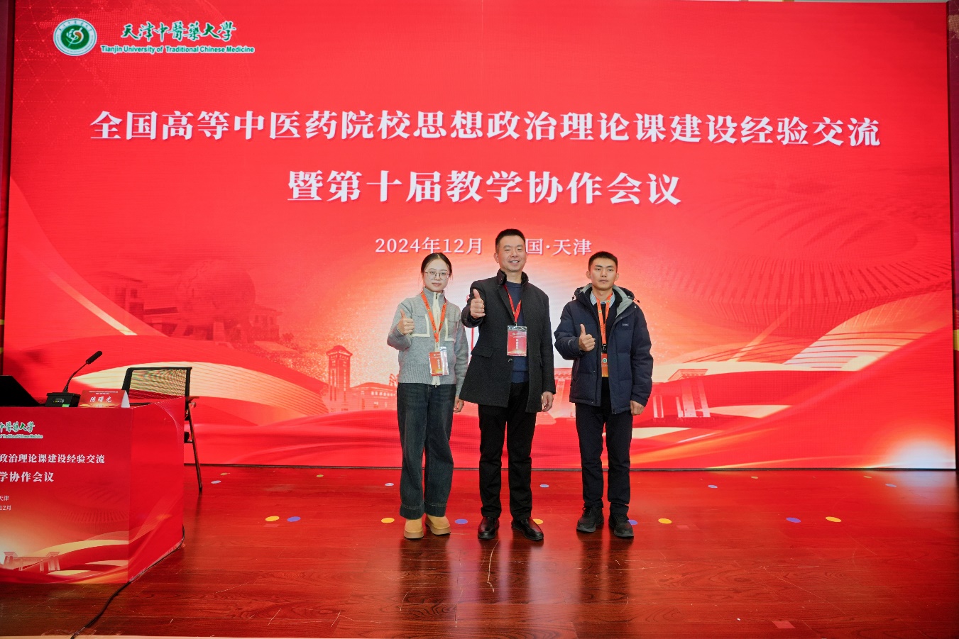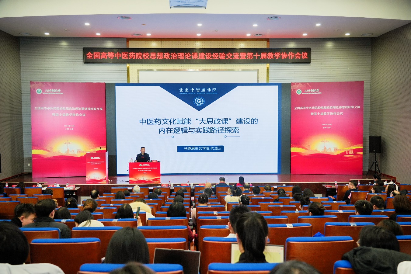 12月14日,“全国高等中医药院校思想政治理论课建设经验交流暨第十届教学协作会”在天津中医药大学召开。此次大会以“坚持‘两个结合’,突出中医药特色,推动思政课建设内涵式发展”为主题。来自南京中医药大学、上海中医药大学等全国24所中医药院校的专家领导、思政课教师及思想政治教育工作者共计170余人参会。马克思主义学院代浩云院长、邹左老师、代小平老师应邀参加了本次会议。