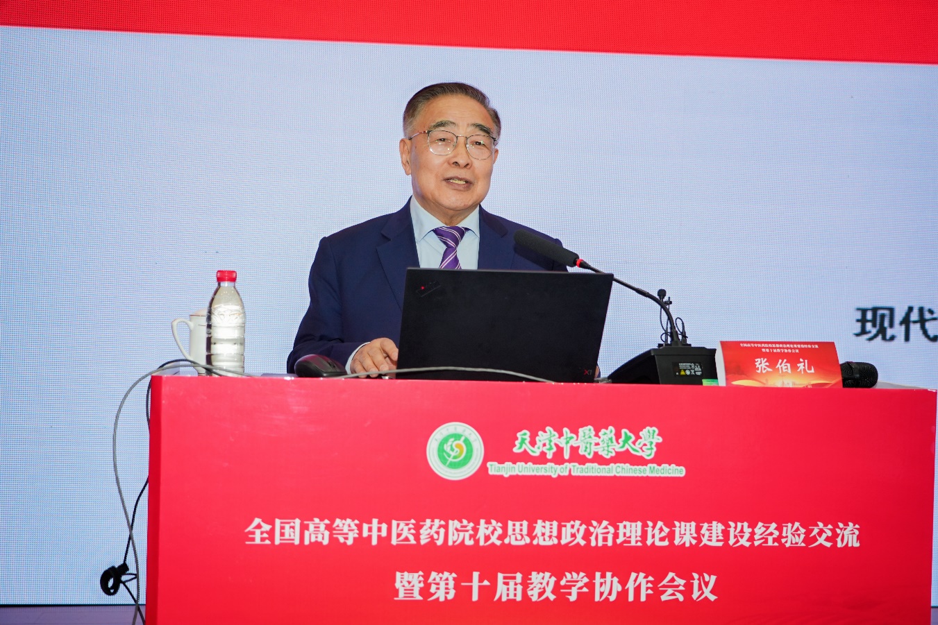 主旨论坛环节,天津中医药大学名誉校长张伯礼院士作了题为《坚持“两个结合”,推动中医药高质量发展》的报告。张院士指出,“两个结合”是中医药发展的政治理论基础,是将中医药纳入国家重大战略的理论基础、中医药传承创新发展的指导思想、中医药现代化和走出去的根本遵循以及促进中医药可持续发展的坚强保障,引起与会师生的强烈共鸣。