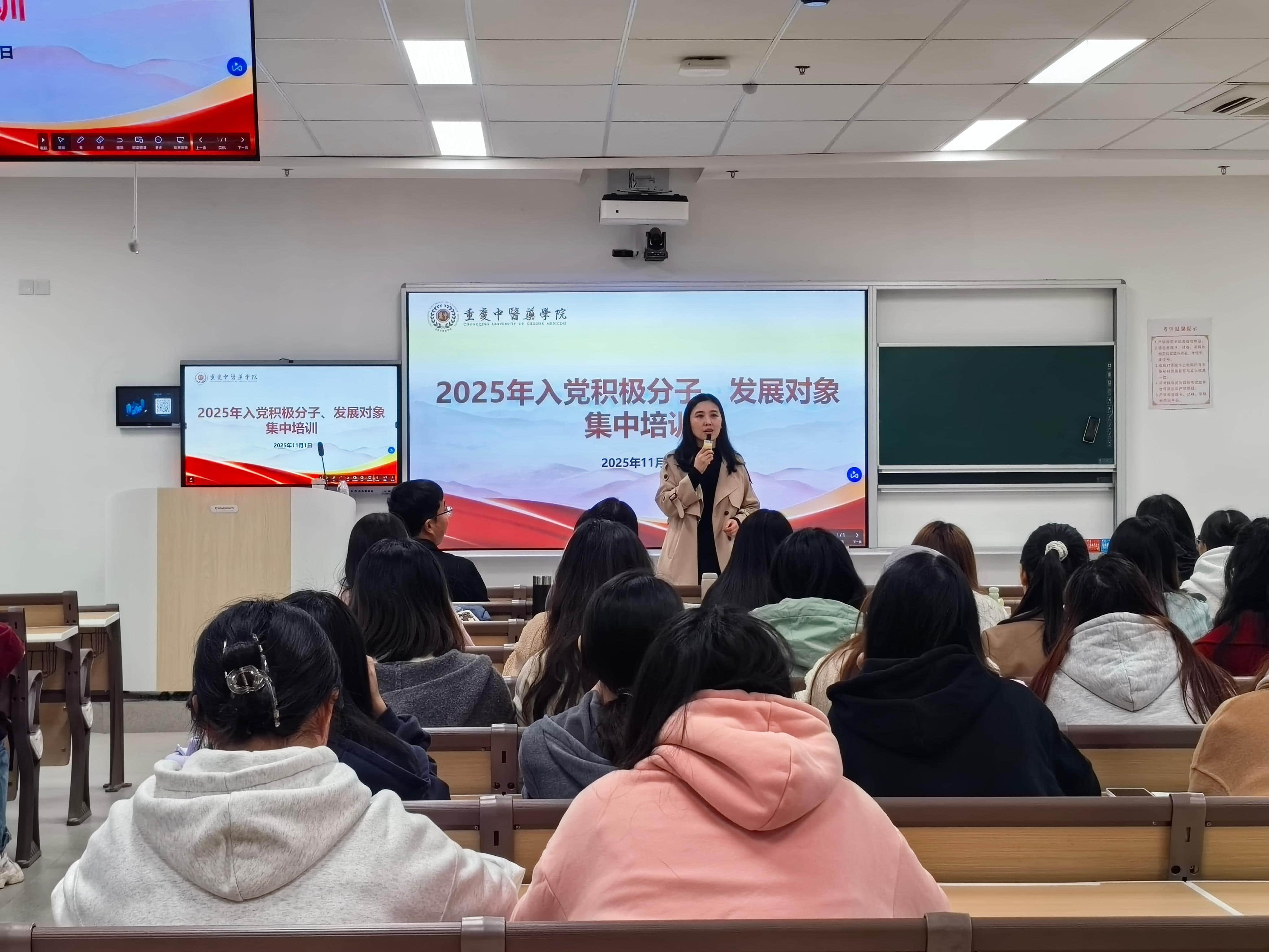 2025111日,马克思主义学院专职组织员杨成凤老师为学校2025年入党积极分子、发展对象作了主题为“新时代中国共产党的创新理论和方针政策”的培训。