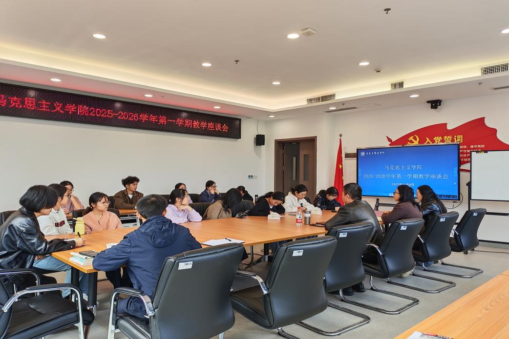 为更好倾听学生心声,加强师生沟通与交流,促进教学质量提升,11月4日,马克思主义学院于C3-306会议室召开2025-2026学年第一学期教学座谈会。马克思主义学院院长、各教研室负责人、教学秘书、思政课教师代表及14名学生代表参会。