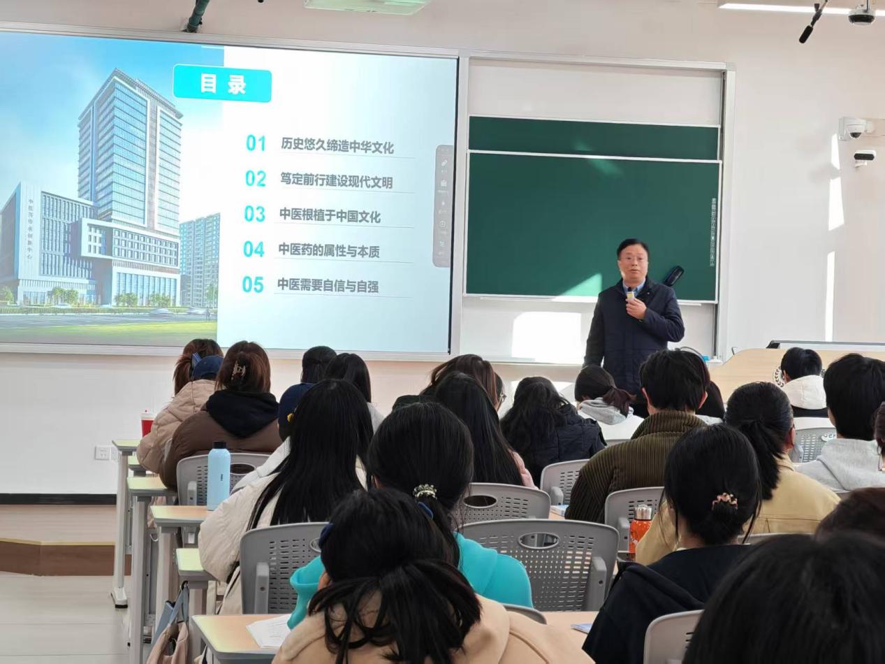 吴校长以中华文化核心特征为切入点,系统引导学生深刻理解中医药文化植根于中华优秀传统文化的深厚渊源。他勉励学子坚定中医药文化自信,切实担当起新时代中医学子