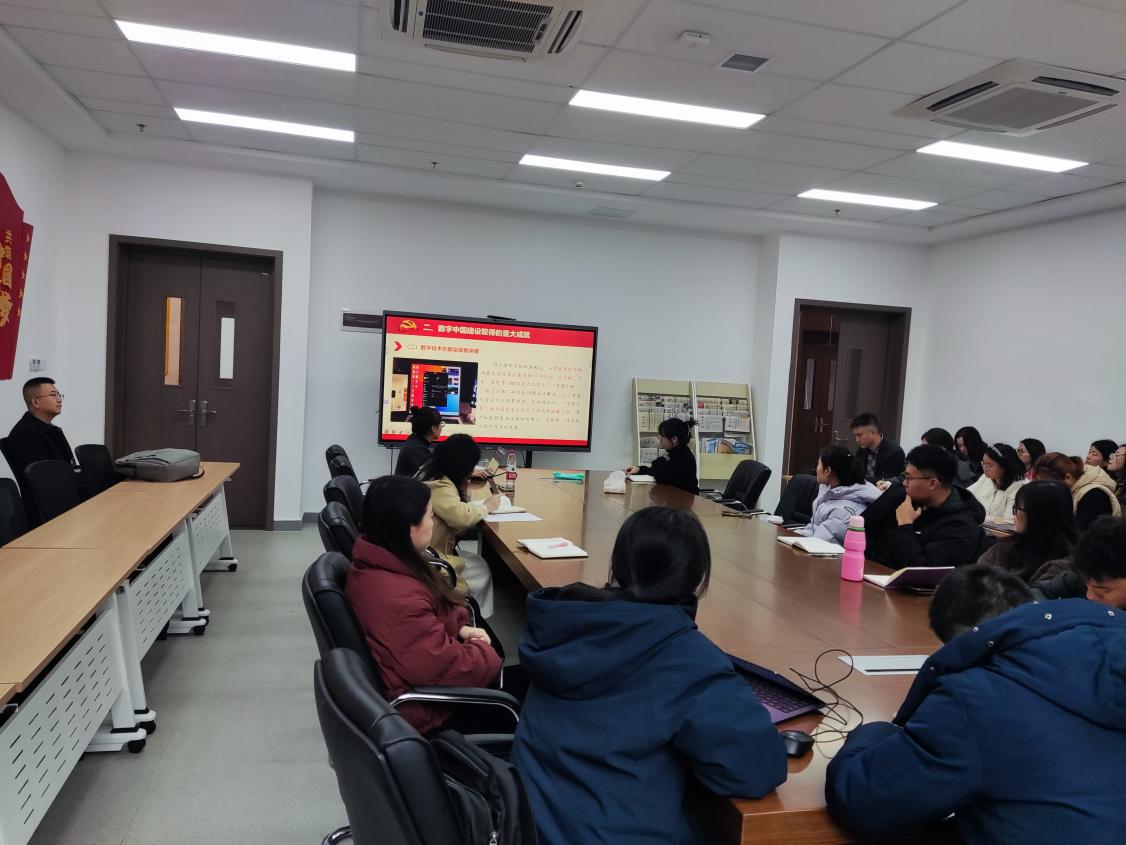 成军青博士以“谱写数字中国建设新篇章——深入学习贯彻党的二十届四中全会精神”为题,首先介绍了党的二十届四中全会通过的《中共中央关于制定国民经济和社会发展第十五个五年规划的建议》,“十四五”时期我国牢牢把握数字化、网络化、智能化发展机遇所取得的数字中国建设显著成就,以及“十五五”时期深入推进数字中国建设的重点任务。她号召,青年教师是中国式现代化建设的生力军、主力军,是实现伟大中国梦的造景者、圆梦人,需将个人发展融入国家发展大局,在以中国式现代化全面推进强国建设、民族复兴伟业的征程中贡献青春力量、实现人生价值。