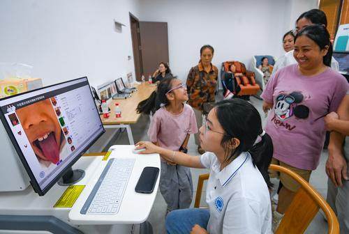 ▲10月8日,AC米兰中文官方网站,家长和新生们正在进行中医AI智能体检。记者 郑宇 摄