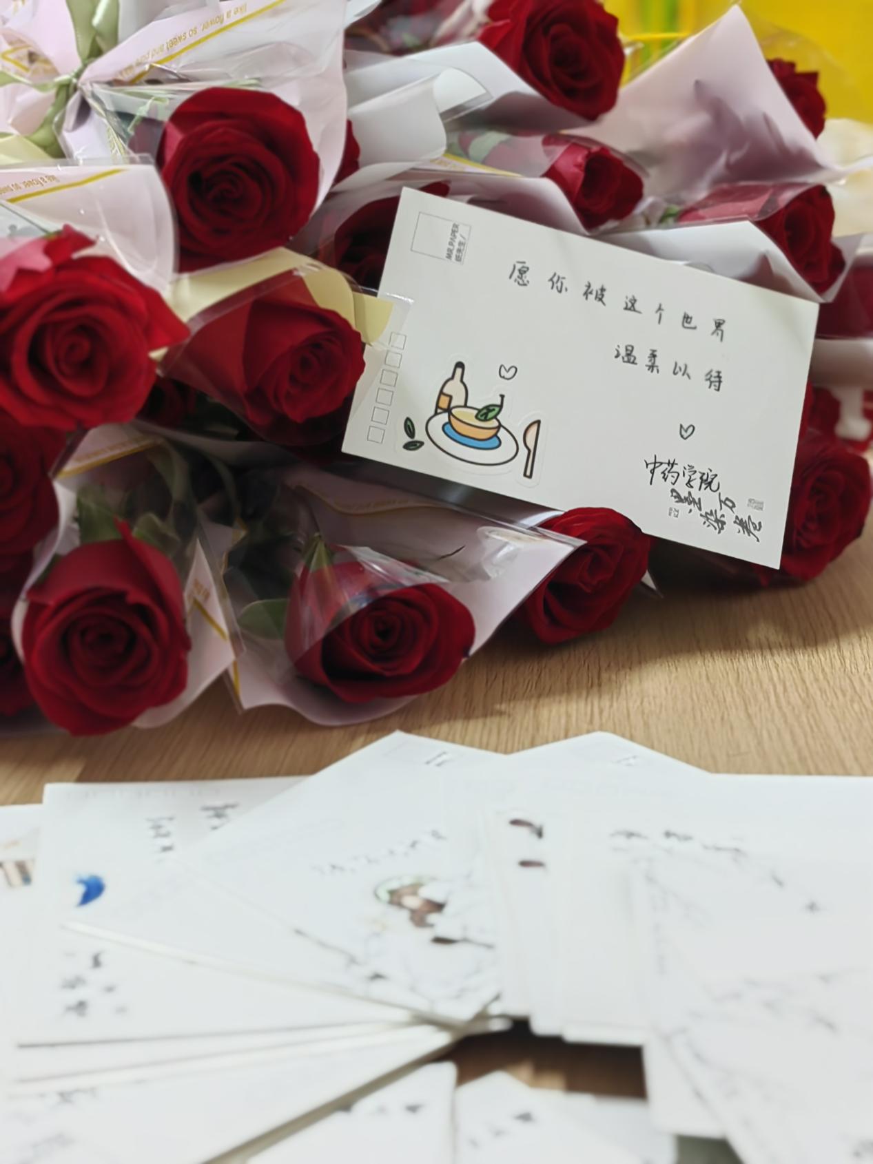 据了解,3月7日下课后,中药学院的学生们自发组织志愿团队提前准备鲜花和贺卡,8日课间,悄悄走进教室,把妇女节礼物送到教师们手中,中药制药1班的学生谷俊杰解释到,这既是为老师准备的惊喜,也是对老师们平时在课堂、生活和学习上的无私付出表达的深切感谢。